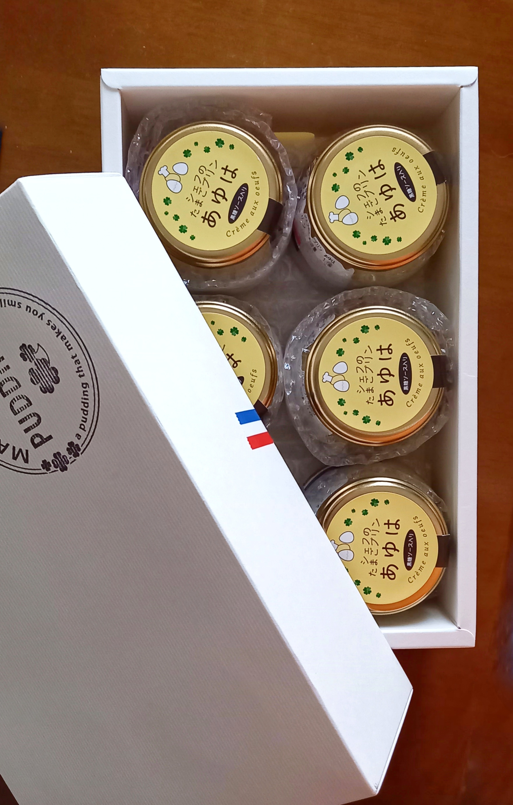 フレンチシェフが作る少し硬めの濃厚「プリン」です。生クリームを多めに使用しているのでプリンとブリュレの間のような食感が特長。黒糖をソースに使用することでカラメルソースのような苦味がなく、子どもにも好まれます。着色料、保存料などは使用していないので安心です。化粧箱入りで賞味期限が30日以上あるので贈り物にもおすすめです。