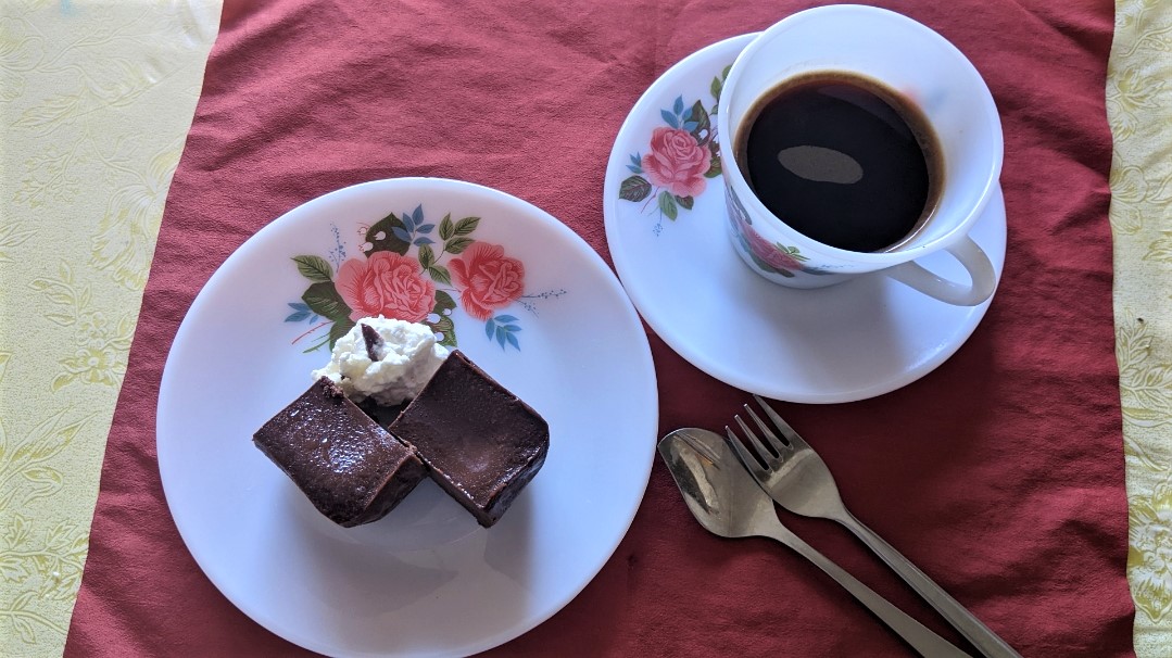 冷蔵庫から取り出して常温にしておいたガトーショコラをパクリ。