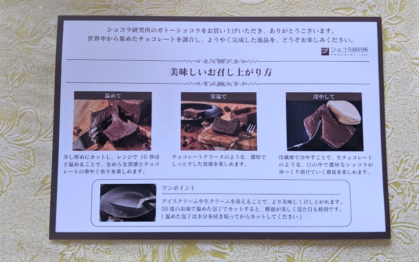ショコラ研究所の濃厚ガトーショコラは、3つの食べ方があります。