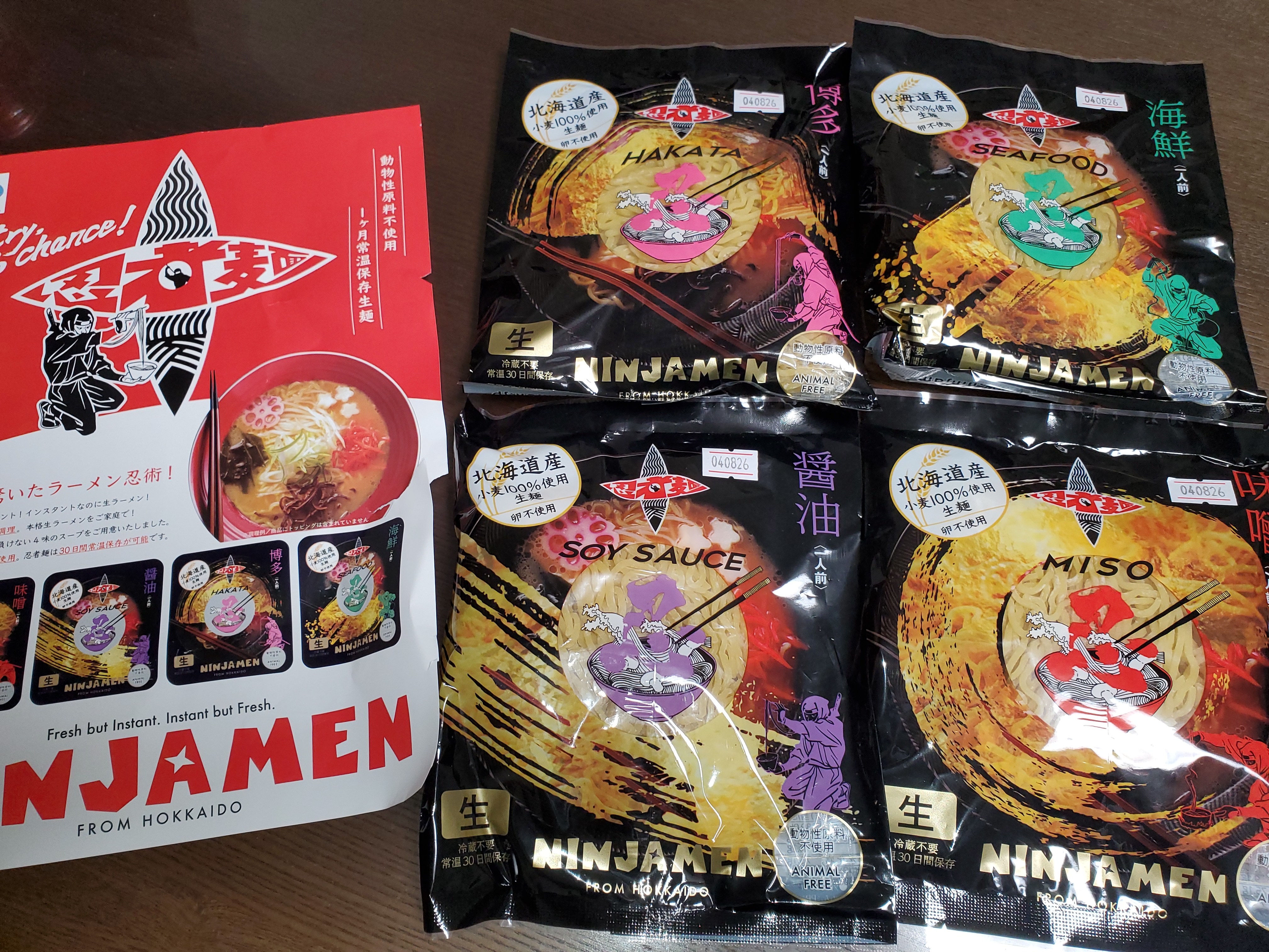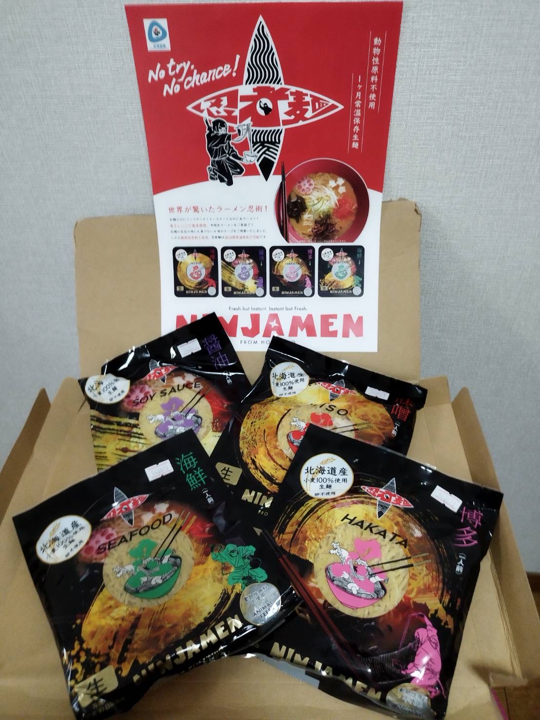 インスタントでありながら、電子レンジ調理が可能な「生ラーメン」です。麺は100%北海道産小麦を使用し、プリプリした食感の縮れ麵。スープは「味噌、海鮮、醤油、博多」4種セットなので、食べ比べが楽しめます。鍋で調理も可能ですが、電子レンジで調理することで麺がプリップリになるのでオススメです。動物性原料不使用で、生麺でありながら常温で1ヶ月間の常温保存が可能。札幌の名店の味にも負けない本格的な生ラーメンが、レンジで調理できる忍術のようなラーメンです。