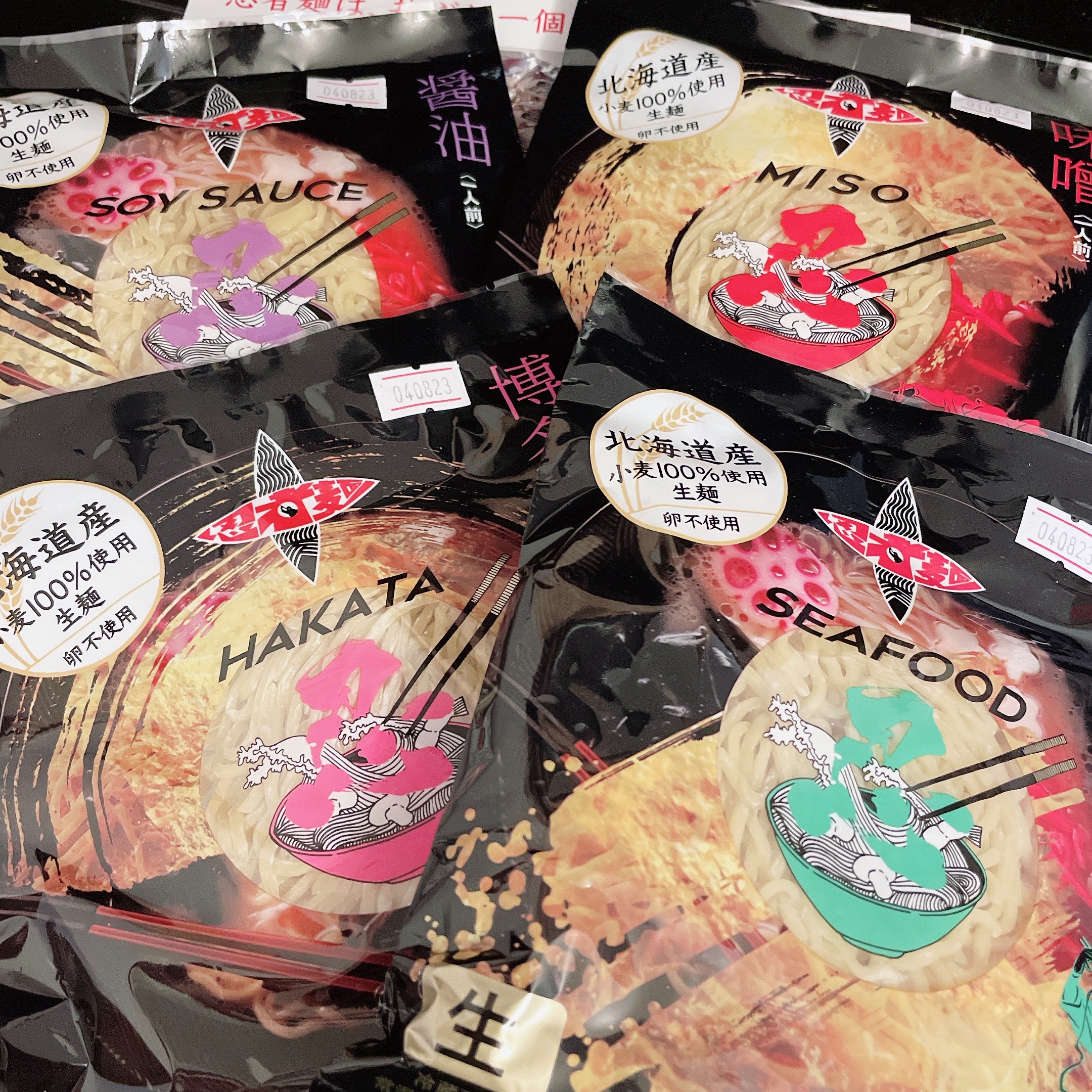 味は4種類。醤油、味噌、海鮮、とんこつ。麺は札幌ラーメンらしいぷりぷりのちぢれ麺。