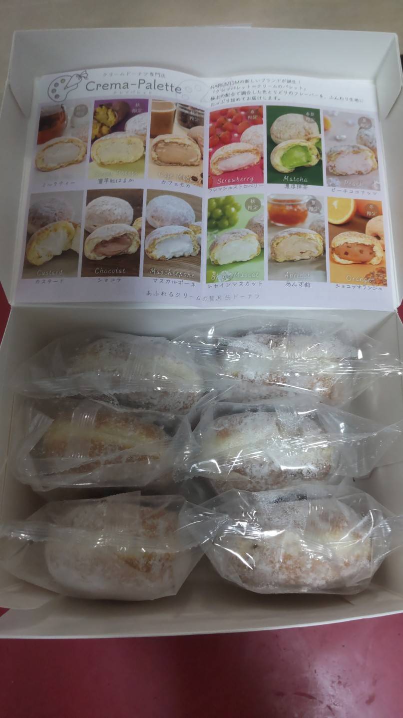 全体的に甘さ控えめで、生地はしっかりしていて、クリームがいっぱい入っているので1つで食べ応えもあり、どの味も美味しかったです。