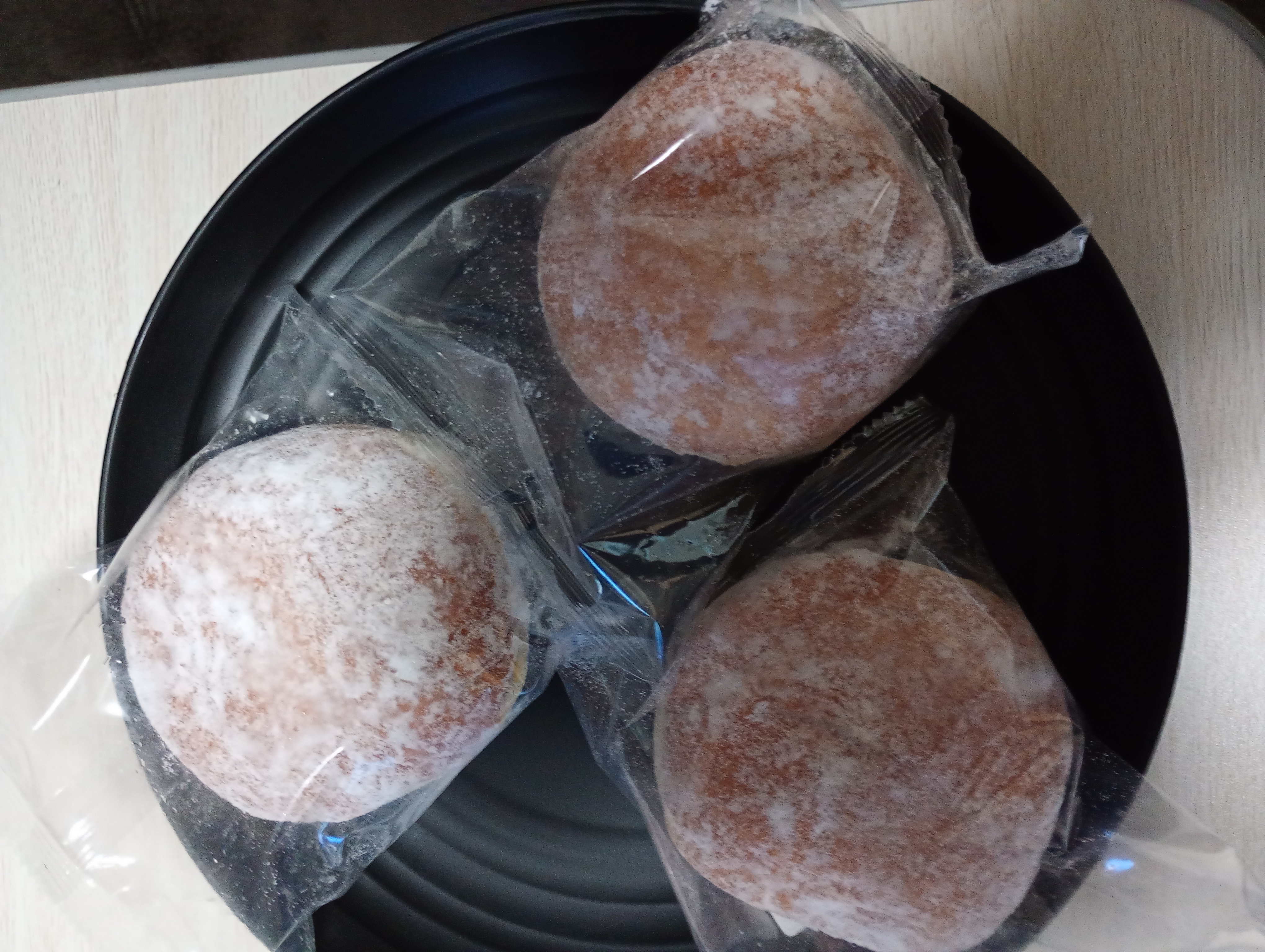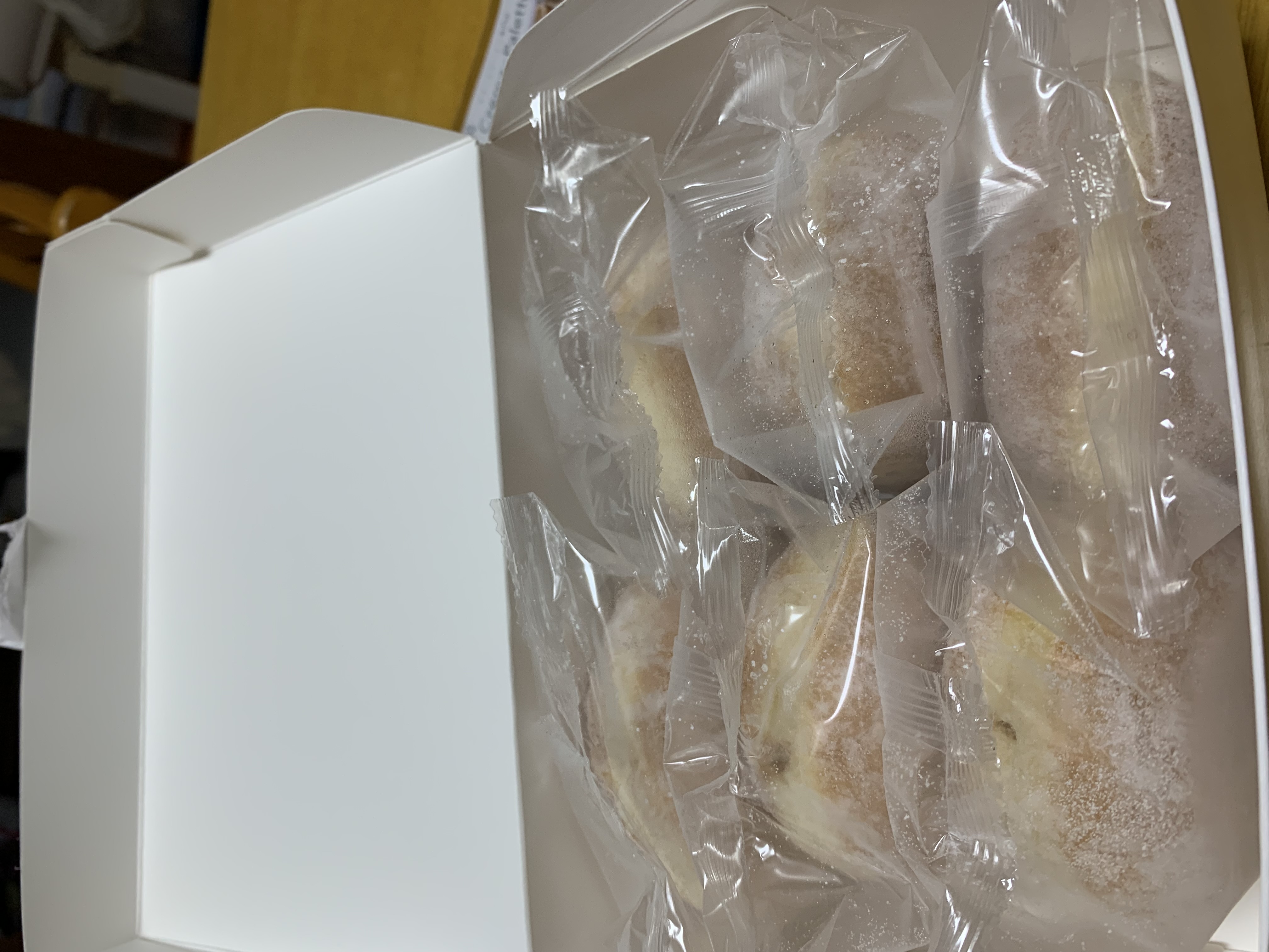 冷蔵庫でゆっくり解凍したからか、べちゃつきも無く、表面の粉砂糖も時間が経ってもサラサラのままでした。