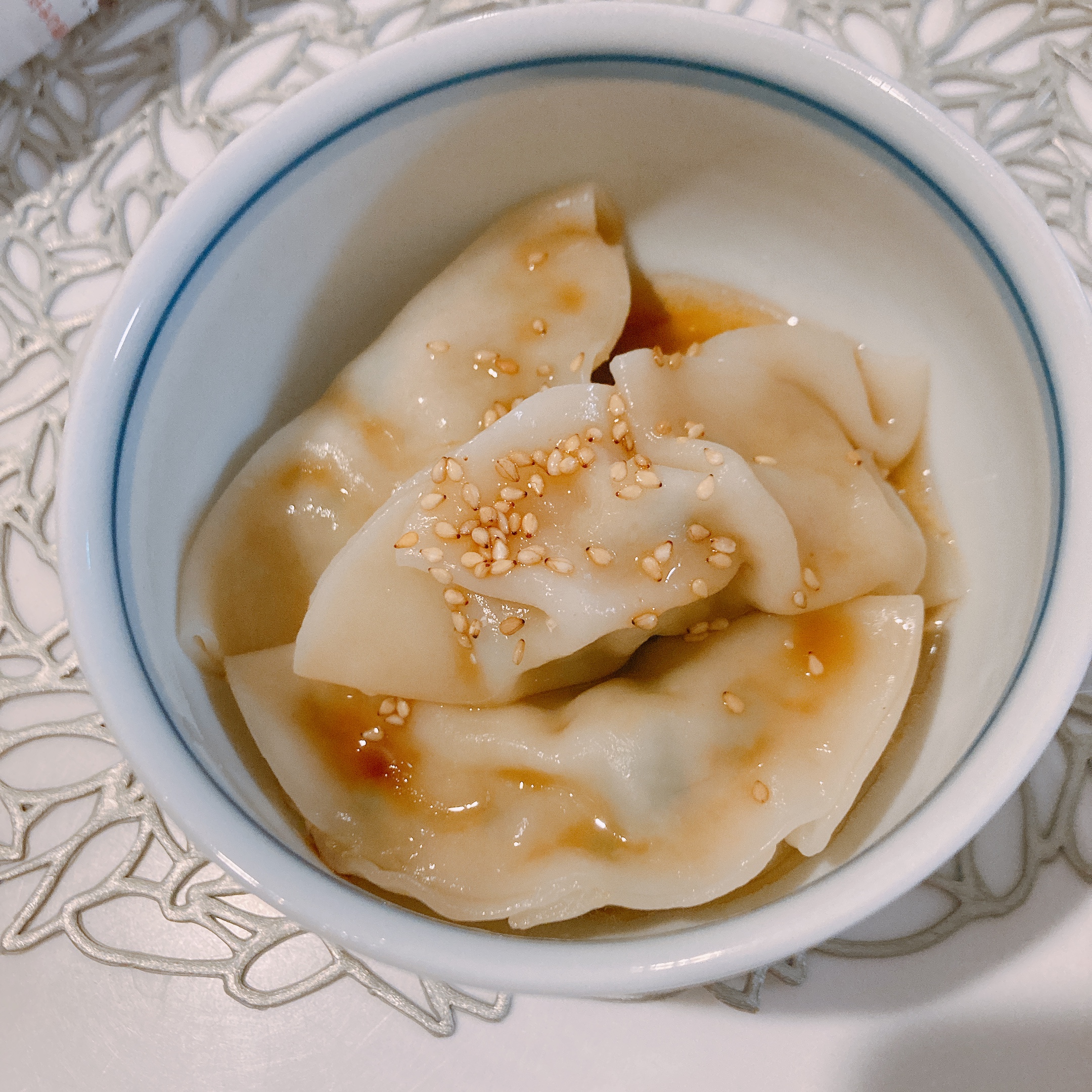 水餃子は餃子とは違って、ツルッとした食感が新鮮で病みつきになります。何より胡麻油の効いたタレがこのモチモチした水餃子に本当によく合います。