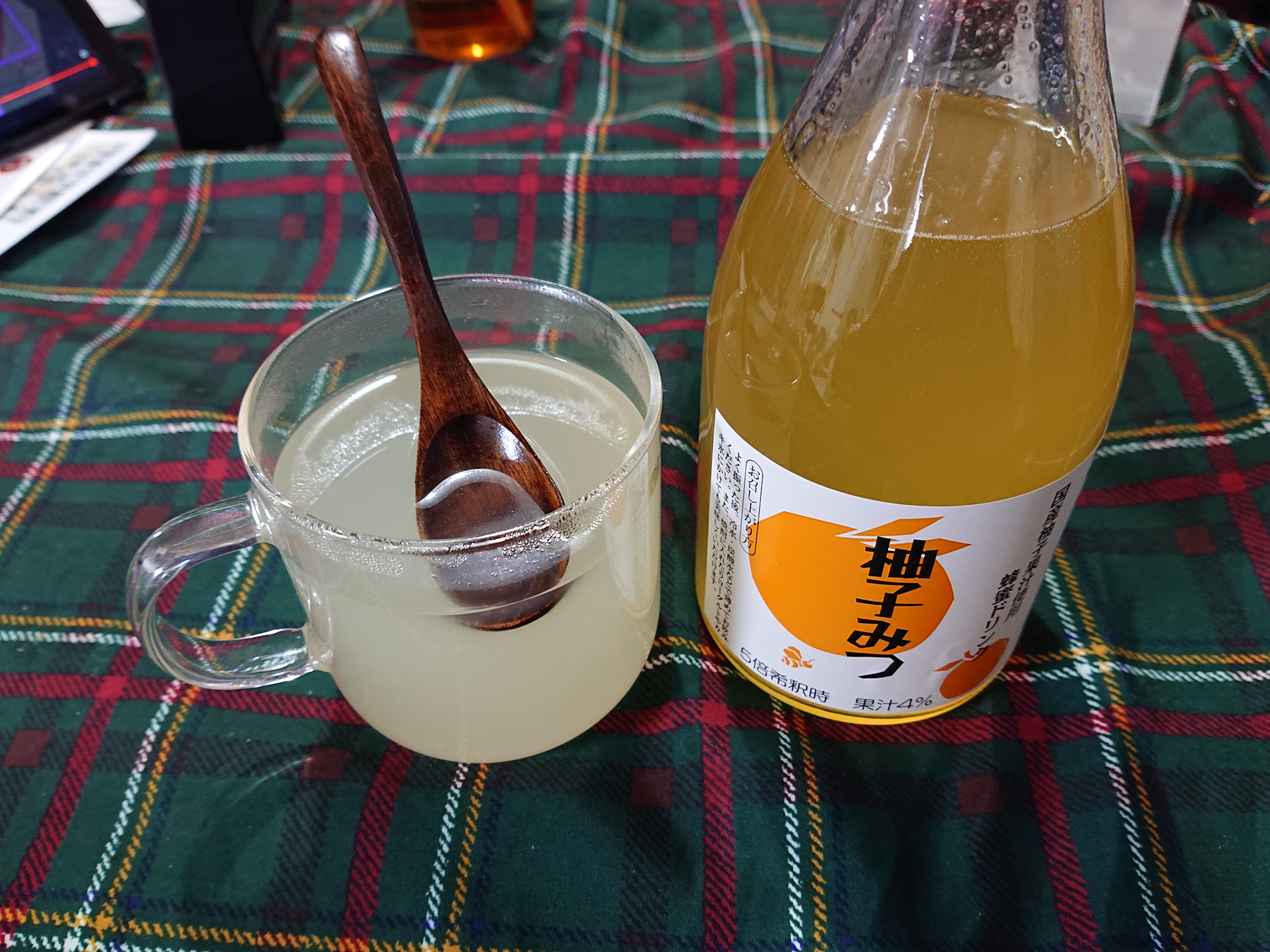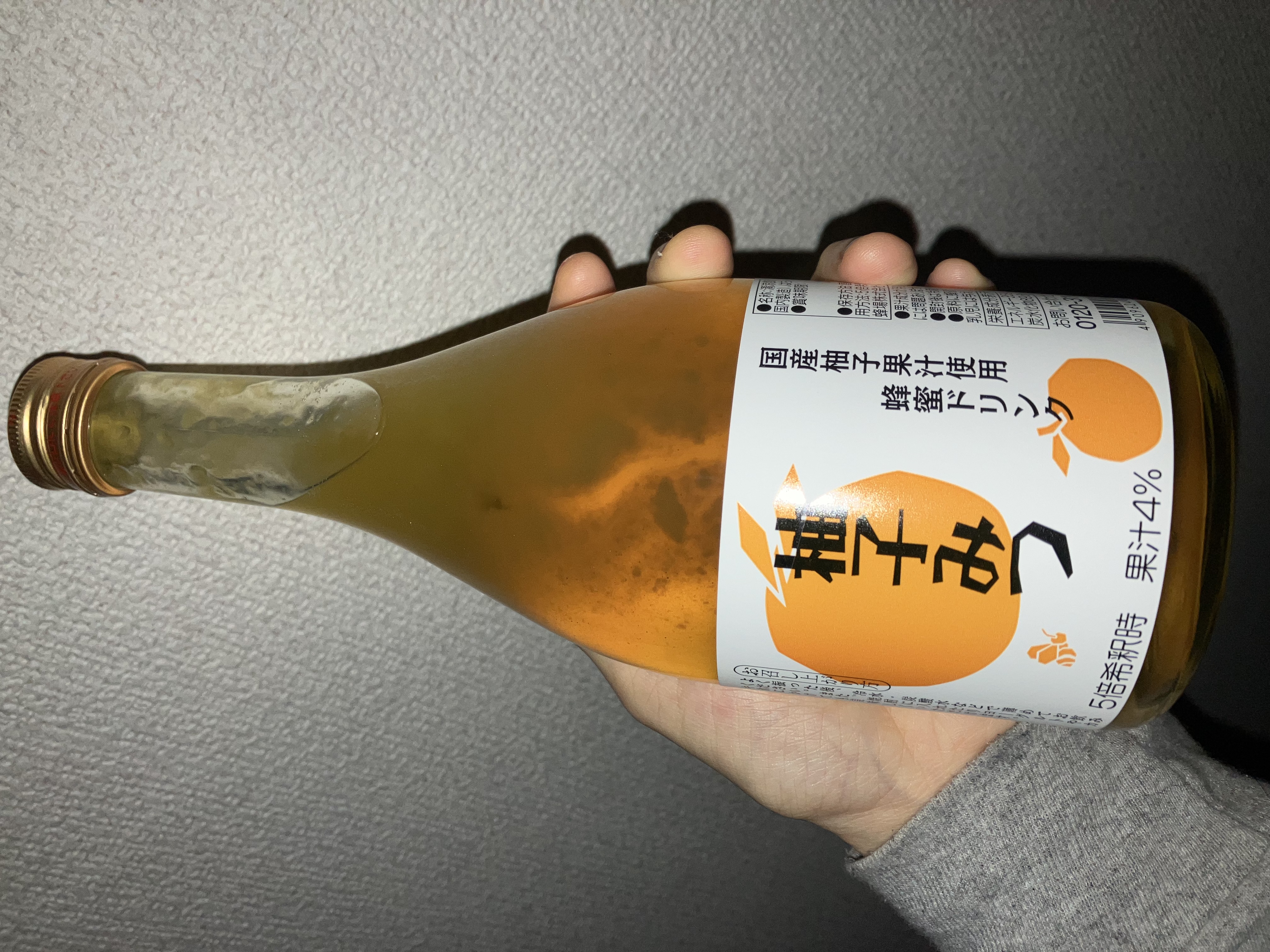 目安としてゆずみつ:水=1:4と記載があり、同じ割合でお酒とゆずみつで割って早速飲んでみました。