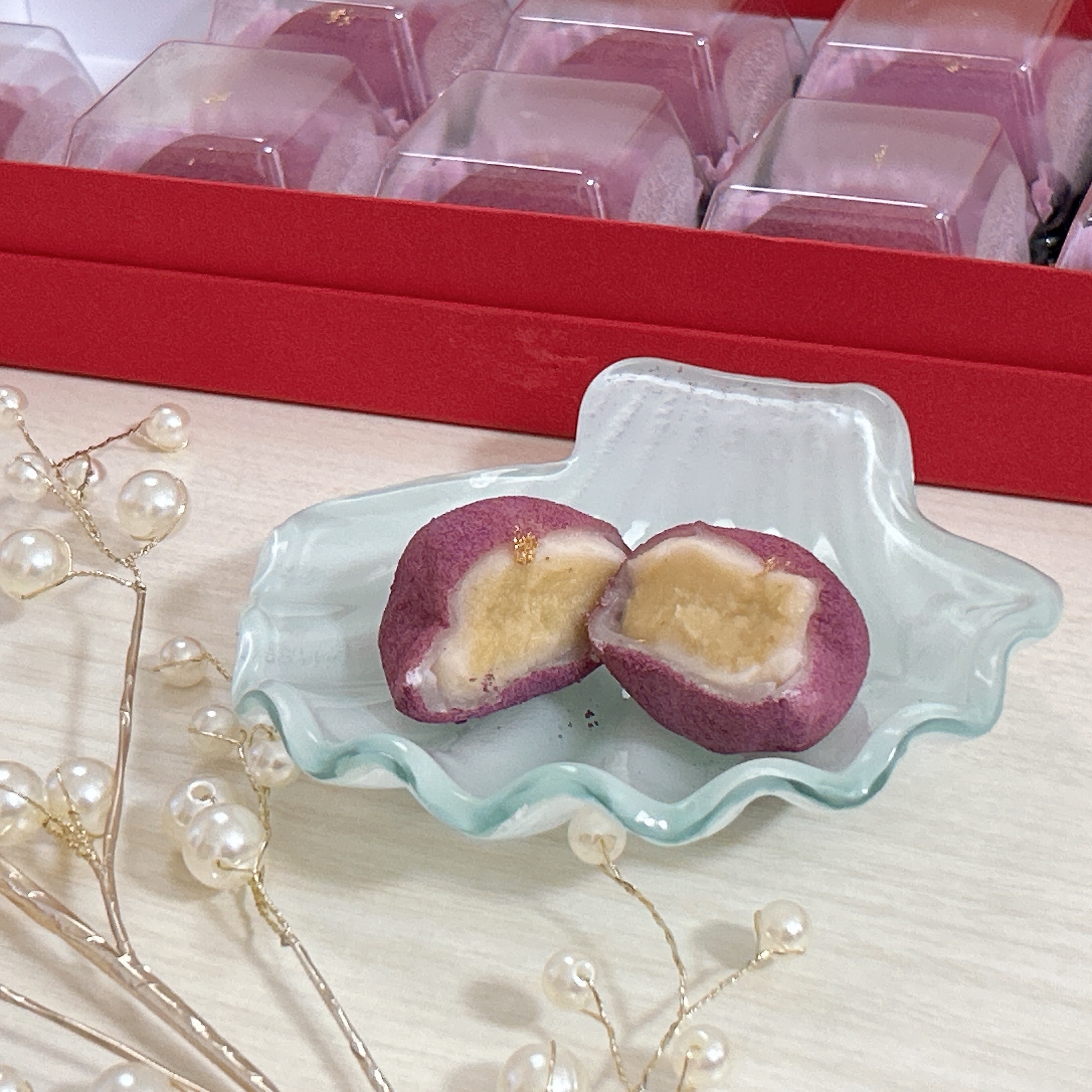 生スイートポテト大福は、上に金粉がのっていて上品さを感じます。