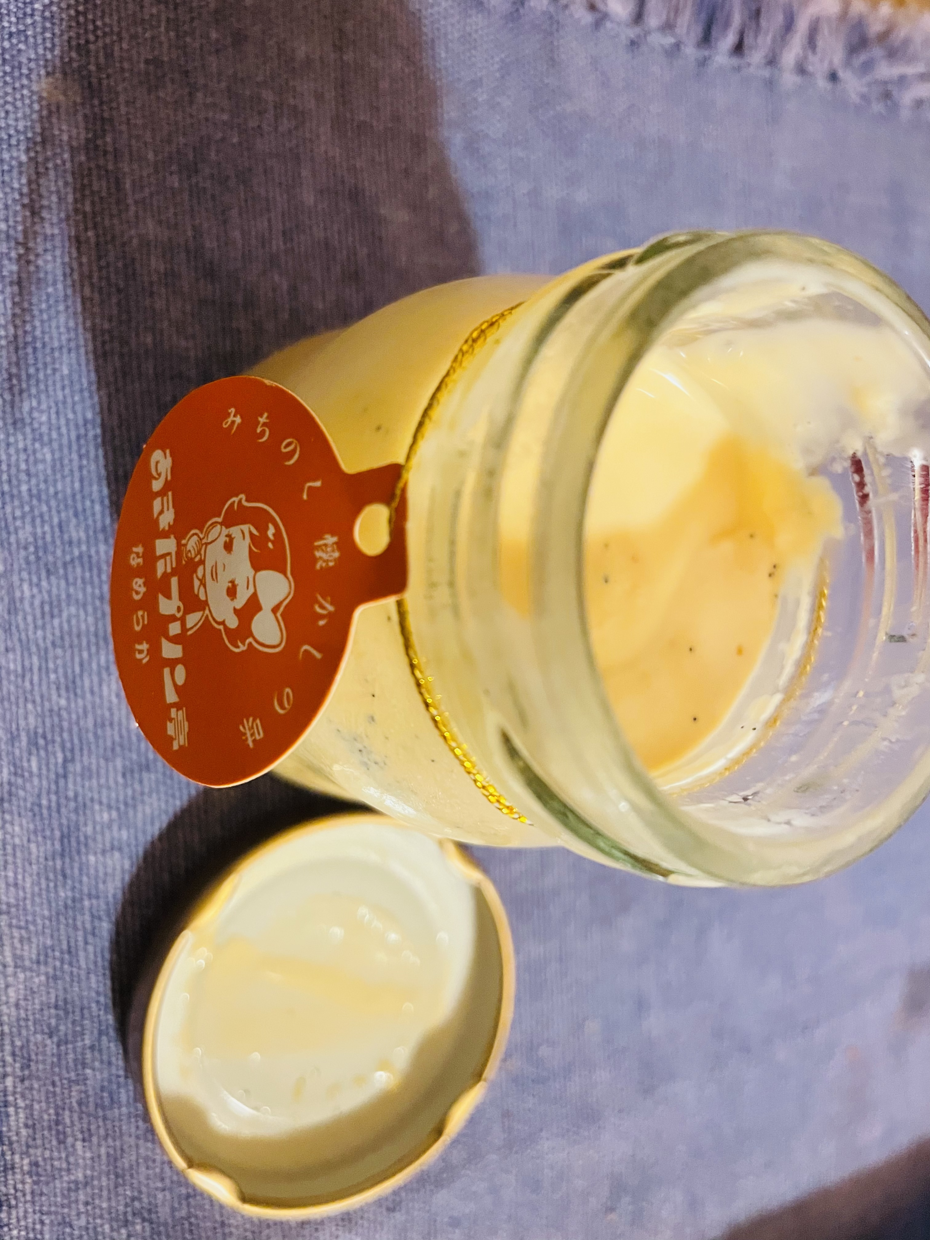 「しょうゆ」プリン:私は、一番この味が好きで、お風呂上りに一口食べて、思わず「うまっ」って言葉がでました。ちょうどよい、濃厚な甘さで、コクがあって、クセになる。幸せなお味を味わって欲しいと、ムスメ夫婦のところにおすそわけ。彼女も「今までにない味!」と興奮していました。