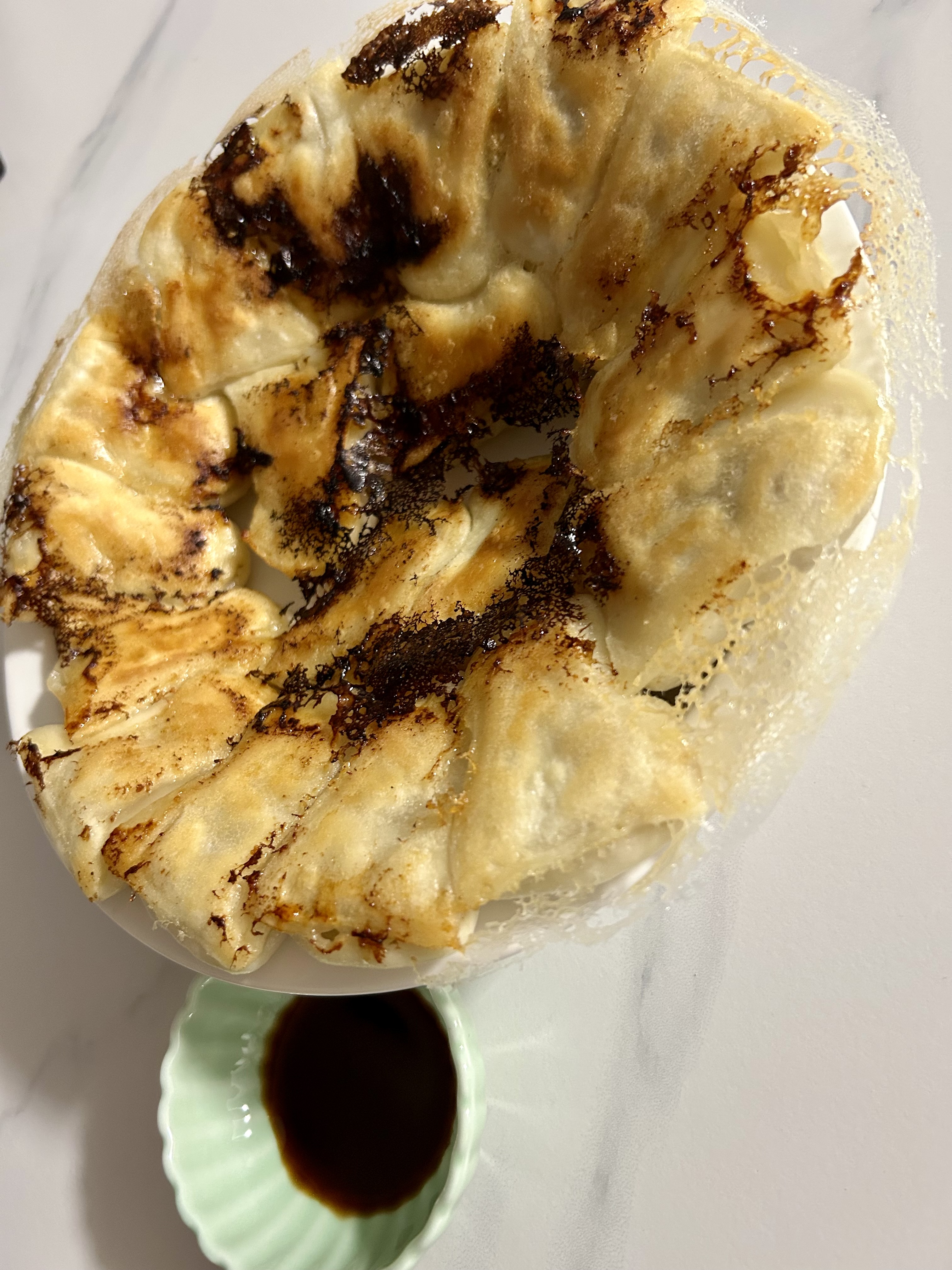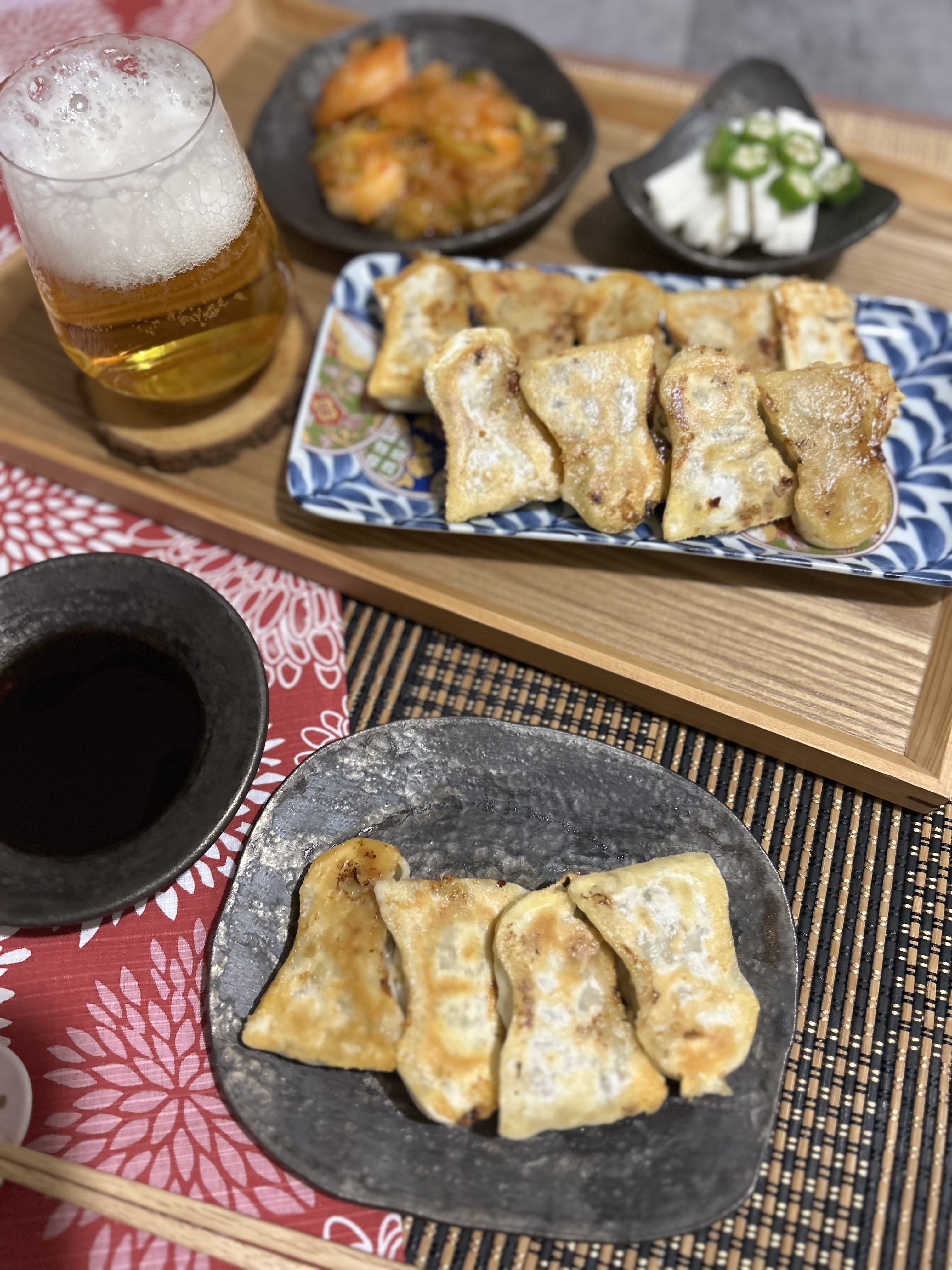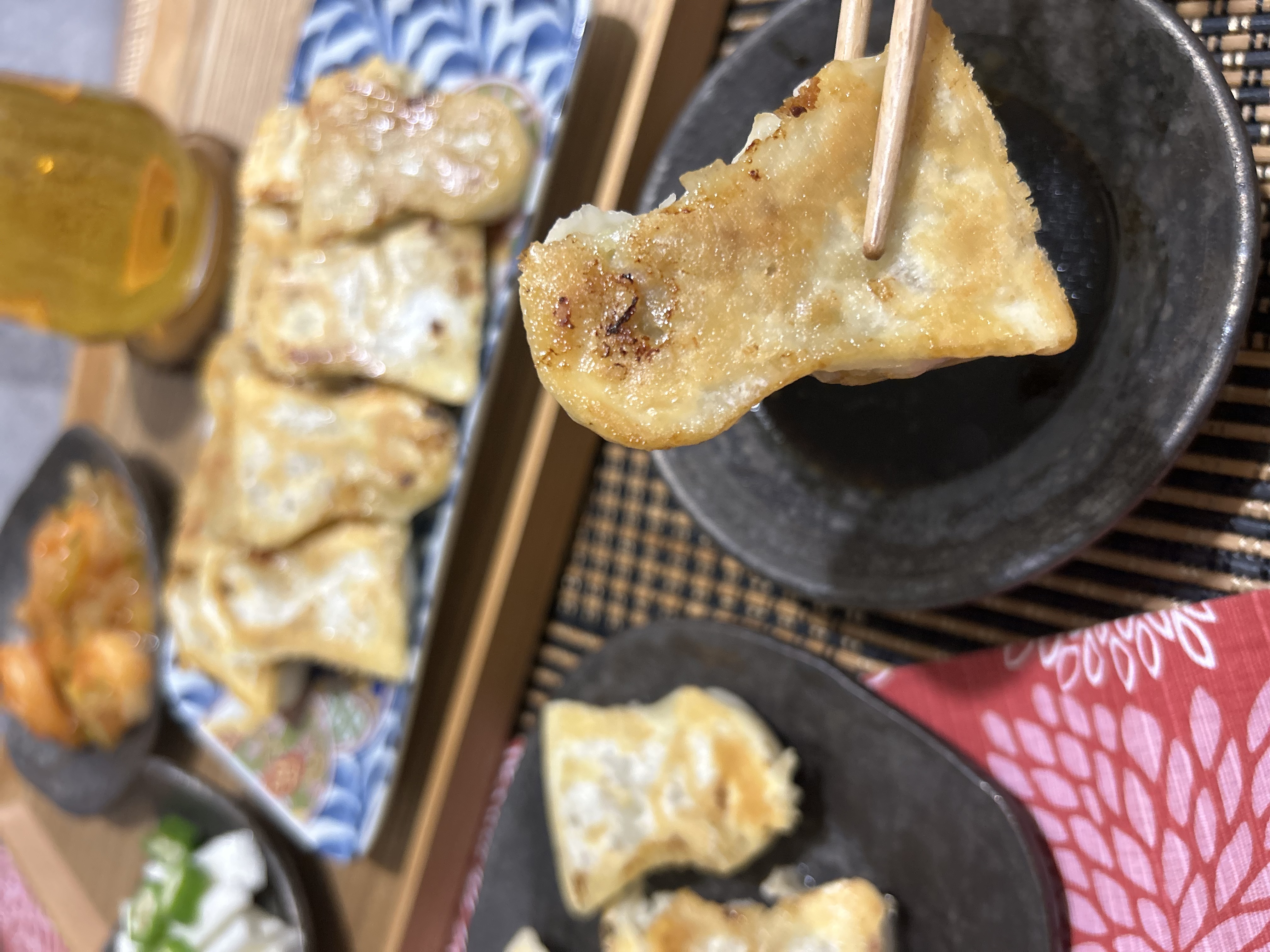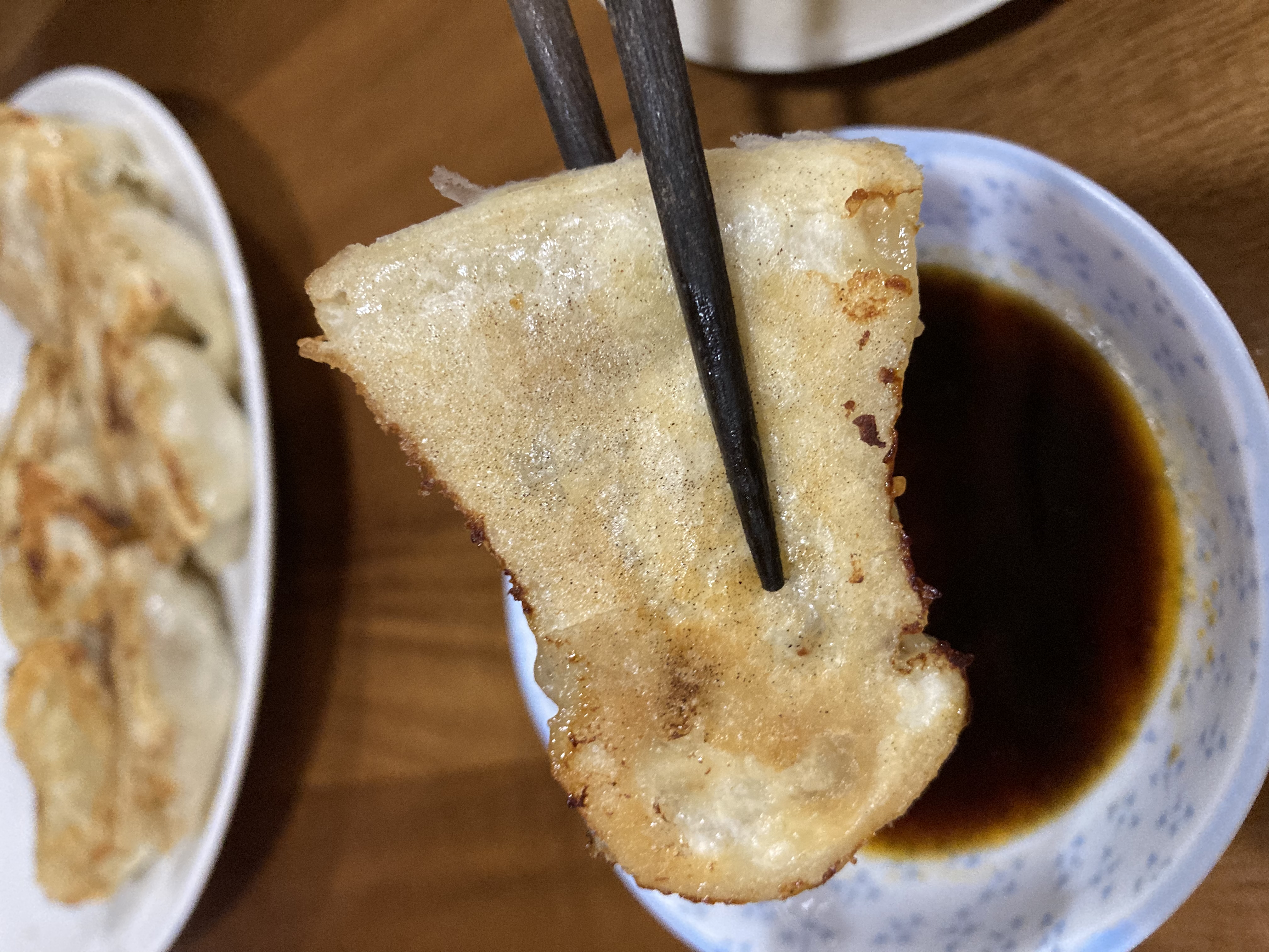 餃子の皮は、数種類の厳選された、小麦粉とタピオカデンプン粉を使用し焼き目はパリッと、モッチモチの食感で食べ応えがあり、餡は豚も野菜も国産にこだわり、豚の赤身と脂身の配合を調整し、ジューシーに仕上がっております。