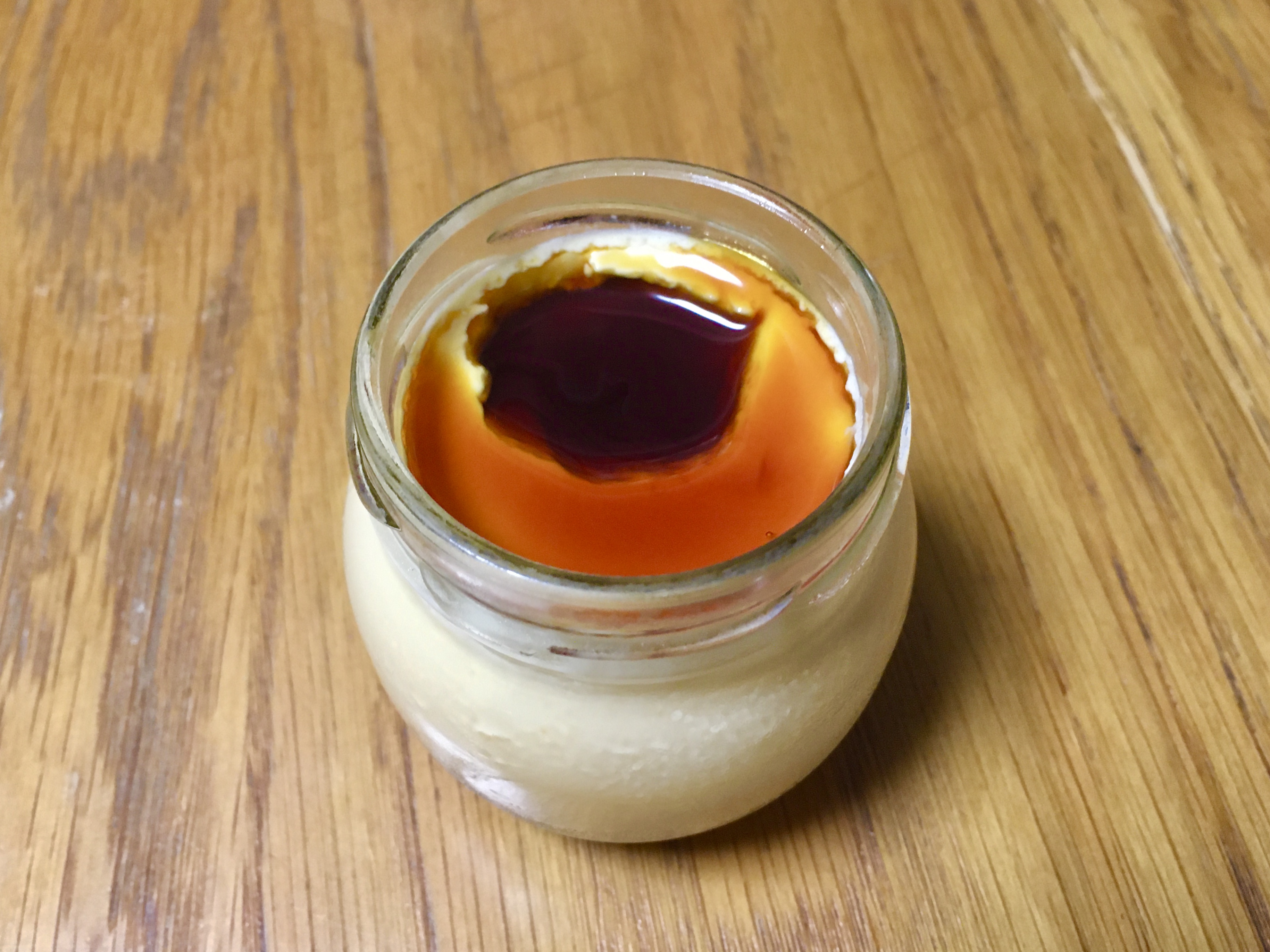 次はカラメルをかけて食べてみます。これがまたさらに美味しい!!カラメルの程よい苦味とプリンの優しい甘みが絶妙なハーモニーです。