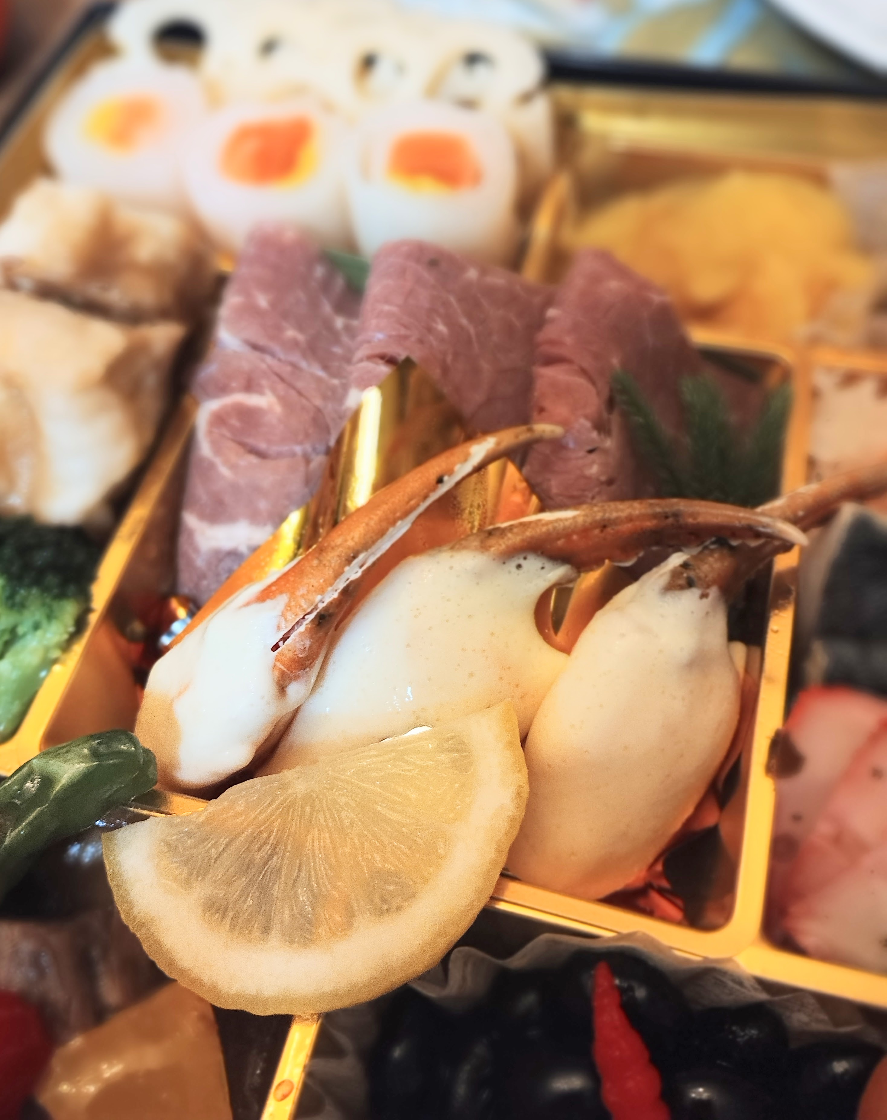 ○伝統の蟹爪ショーフラワー:蟹爪の甘さと、見た目の美しさが楽しめる一品。華やかさがあり、お正月にぴったりです。