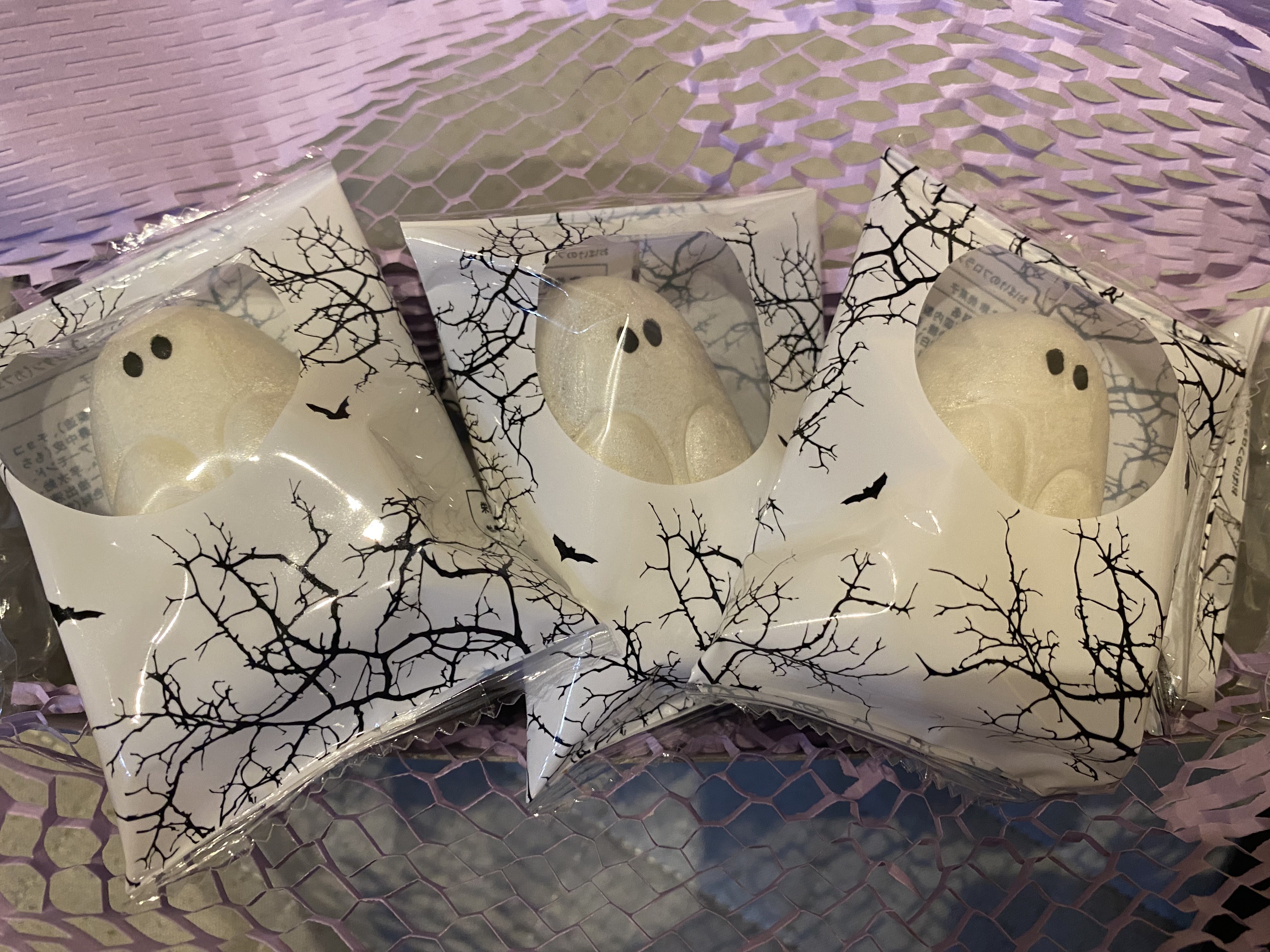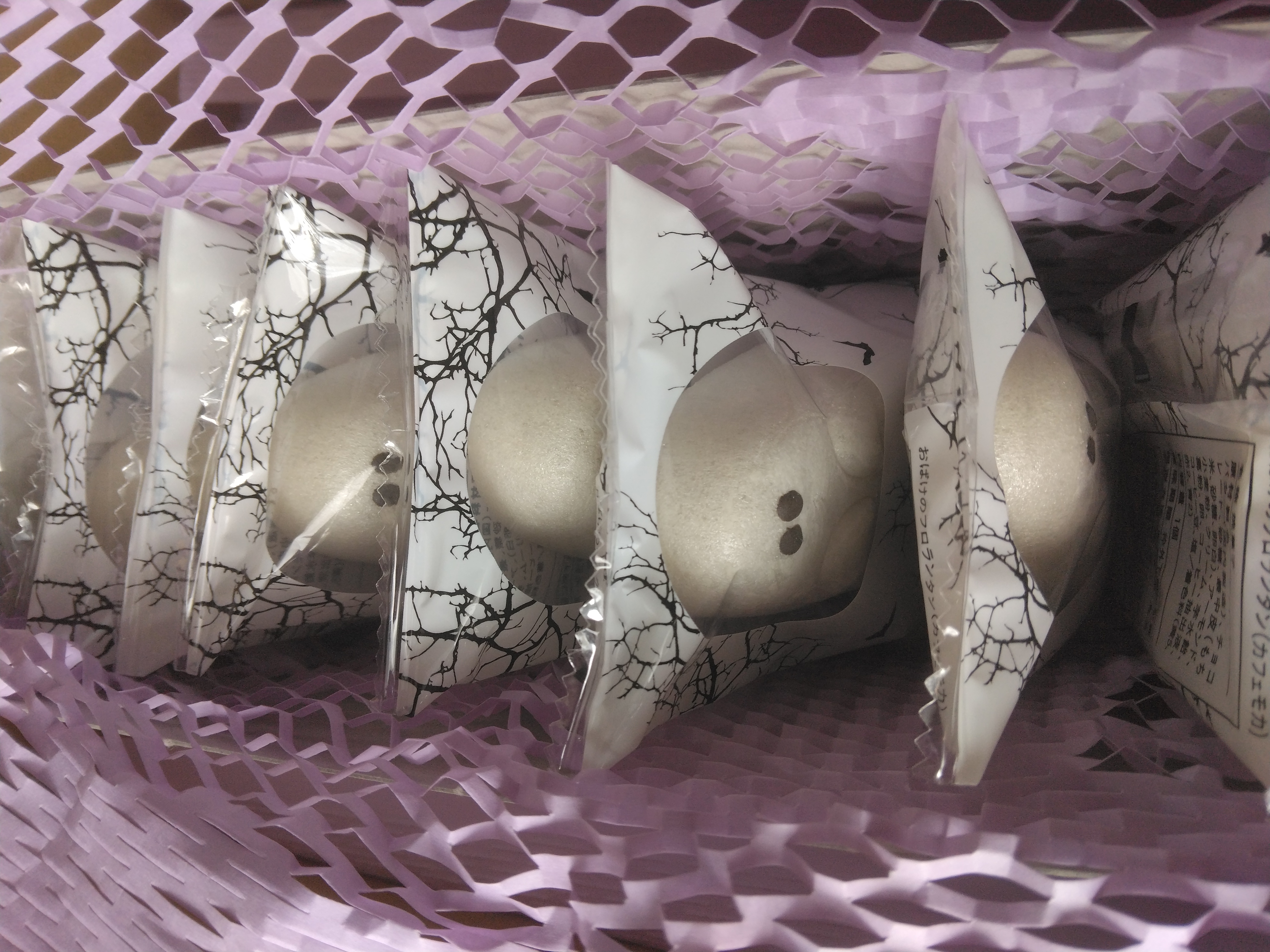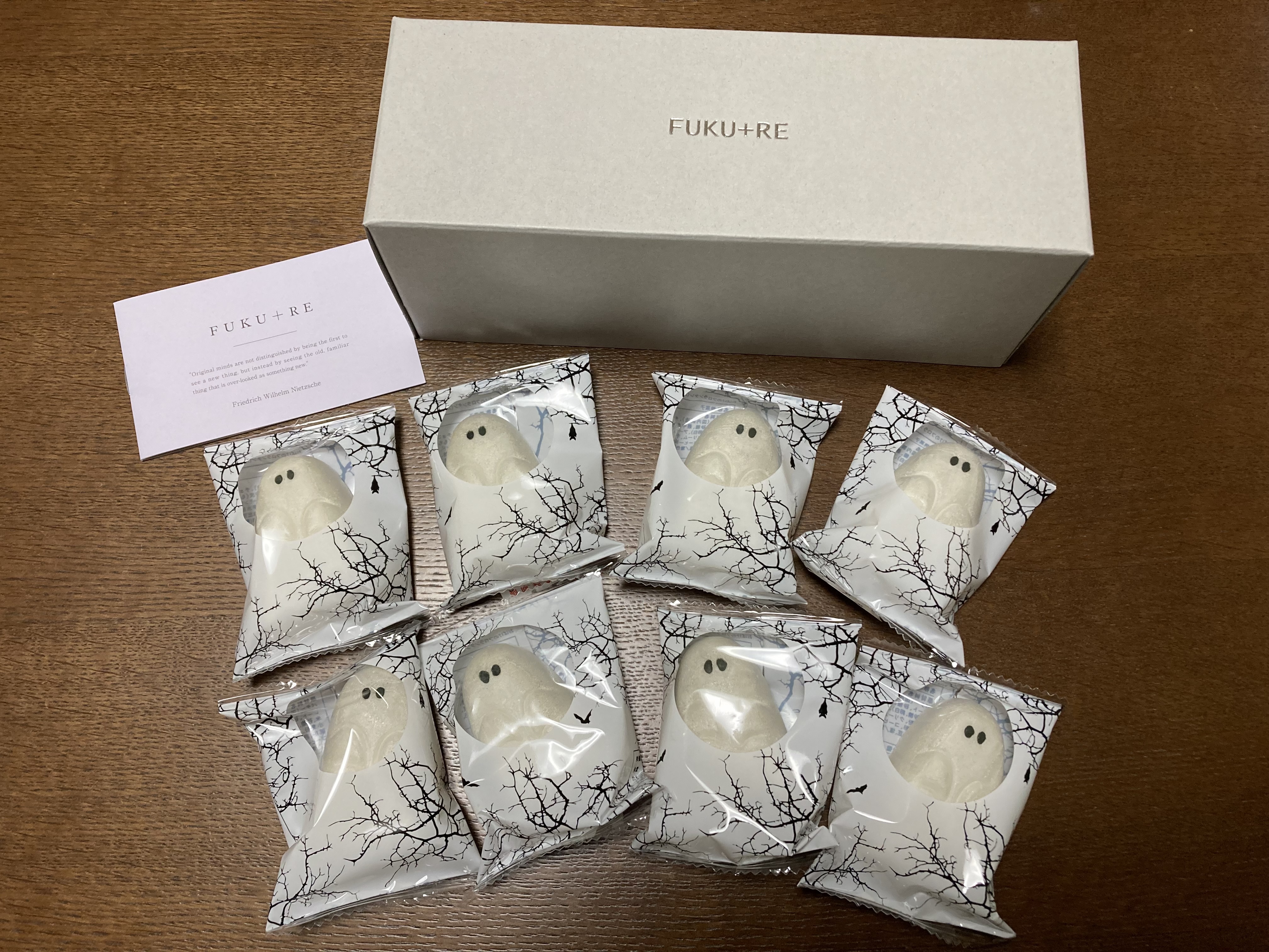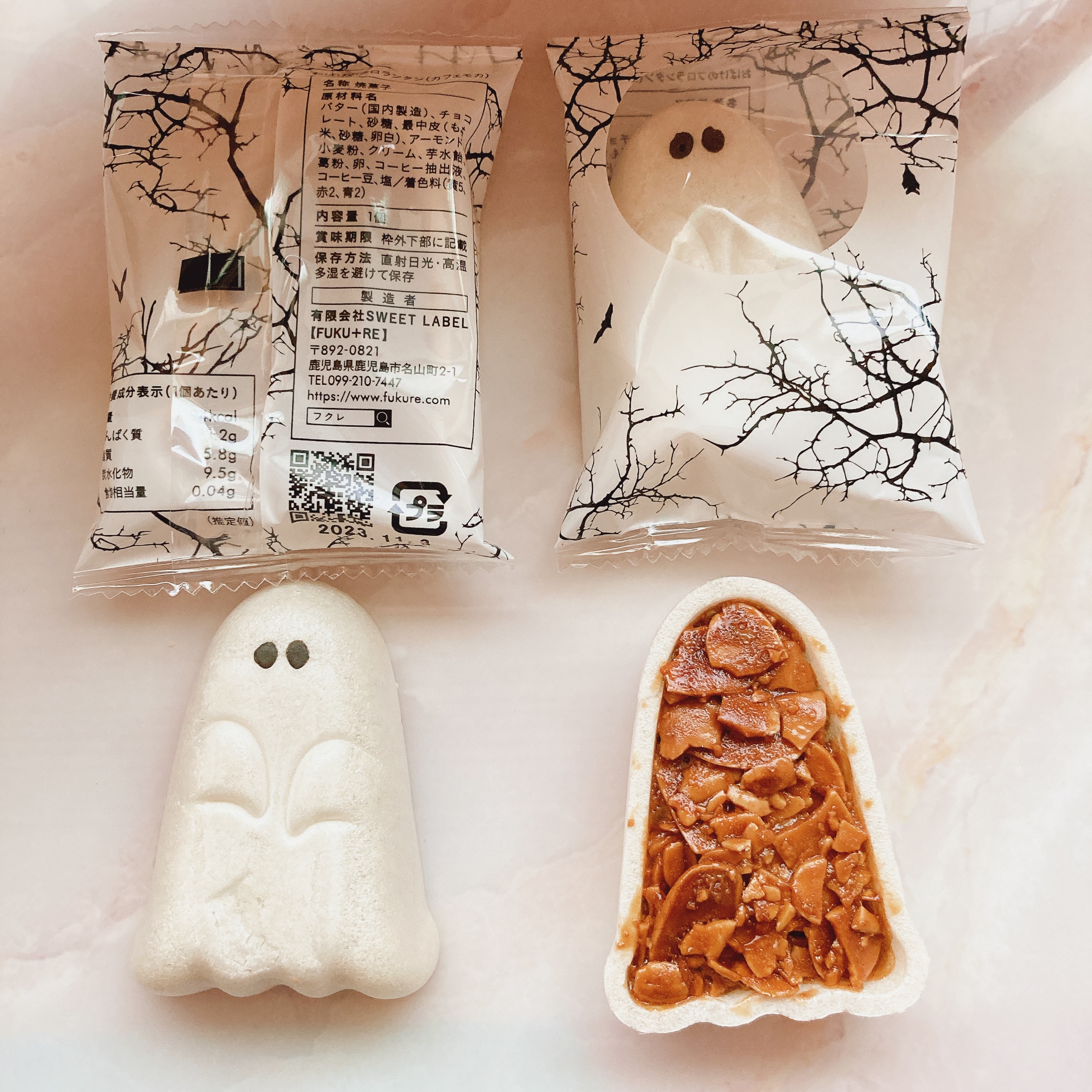 シンプルなグレーの箱に入っているのでオシャレな手土産にもいいんじゃないでしょうか。箱を開けたら1個づつ包装してある可愛いゴースト達!ハロウィンパーティーには盛り上がること間違いないと思います。見た目の可愛さとほろ苦の大人な味のフロランタンのギャップもすごくいいと思いました。