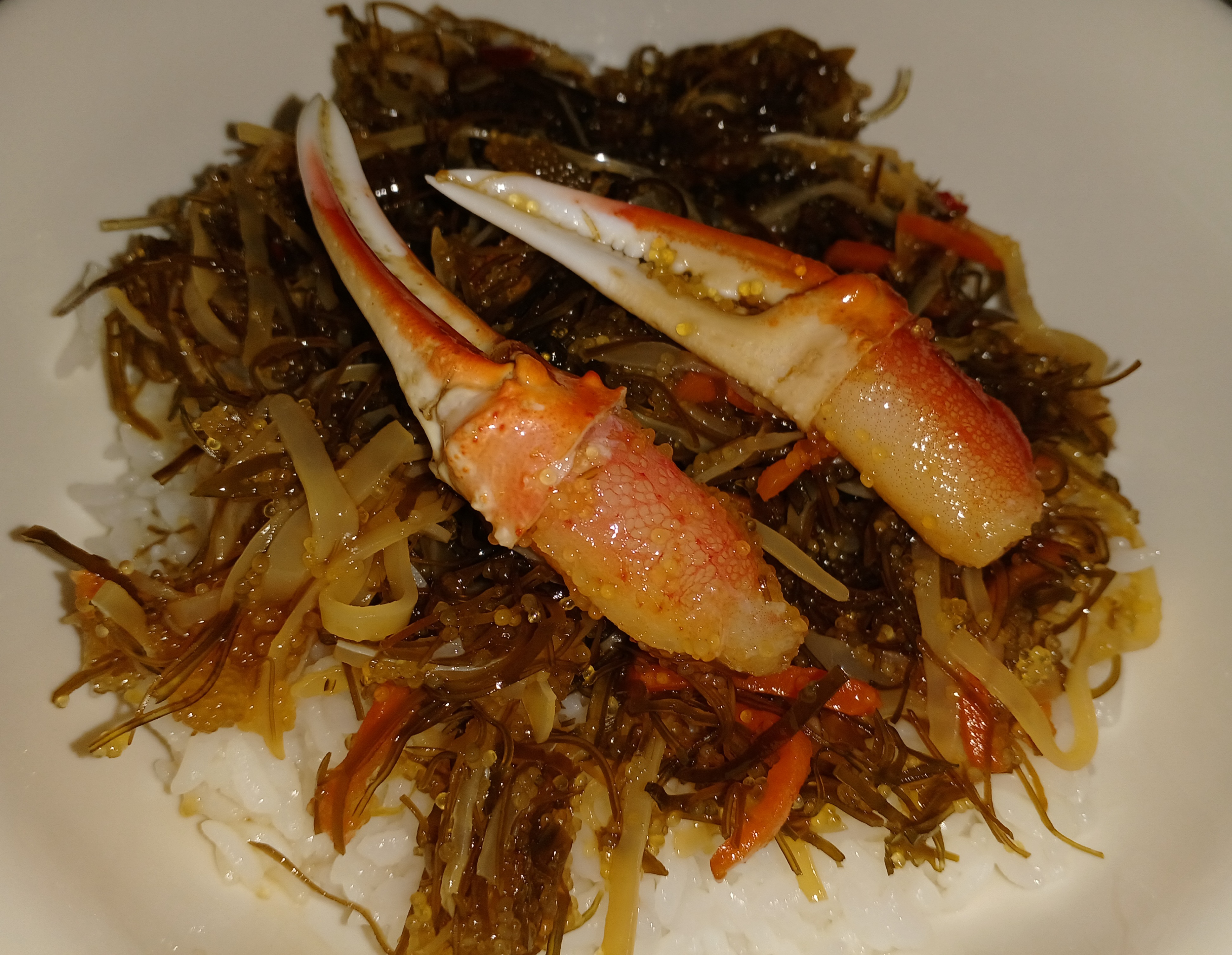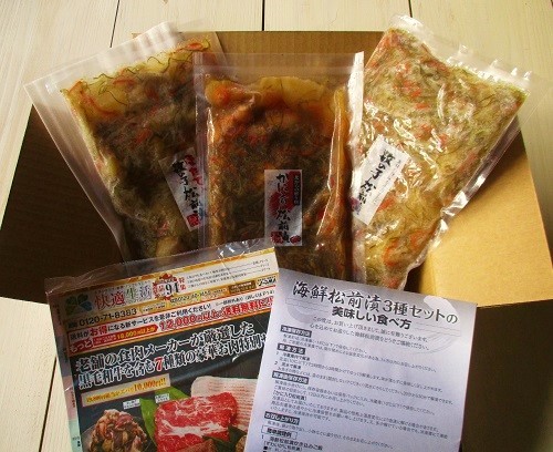 カニの爪が3本ほど入っています。松前漬けの味には負けてしまいますが、それでもカニが入ってる豪華さは最高です。華やかなおかずになりました。ごはんにも合うし、お酒にも合う一品。