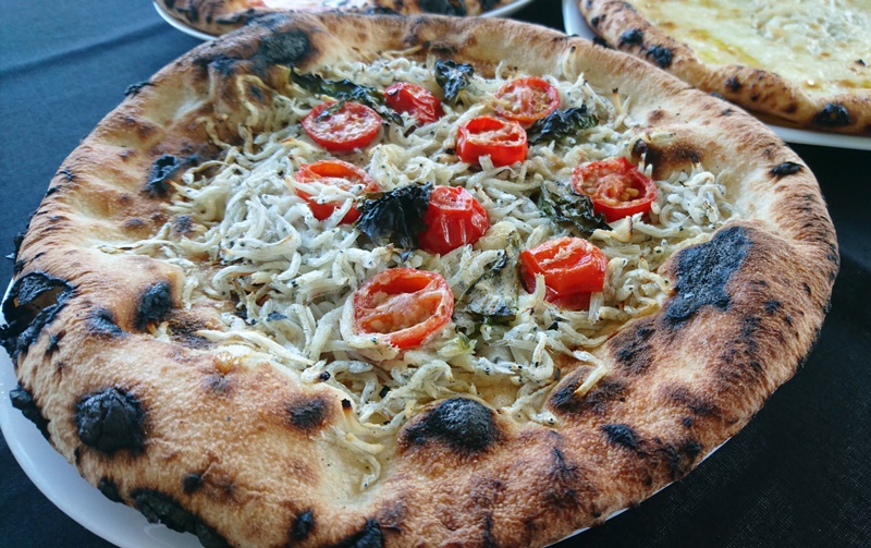 2枚目は、ビアンケッティを。しらすとチェリートマトとバジルとニンニクのピザです。しらすもたっぷりで、チェリートマトは小さいのにとてもジューシーで、バジルの香りもフレッシュでとても美味しかったです。ニンニクとチーズで満足感も満たされます。ビールにも白ワインにも合いそうです。