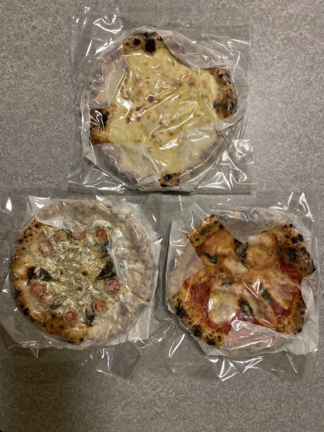 約10種類以上もあるラインアップの中から好みのピッツァ3枚を選べるセットです。生地は、イタリア産の小麦「カプート」を100%使用し、低温熟成・発酵しています。400度以上の高温で1枚1枚職人が丁寧に焼き上げています。ピッツァの王道「マルゲリータ」や、4種のチーズが織りなす濃厚な旨みが秀逸「クアトロフォルマッジョ」、香り豊かなきのことチーズが絶妙にマッチした優しい素朴な味「フンギ」など定番から変わり種までバリエーション豊富。季節限定のピザも含まれているので、何度もリピートしたい商品です。職人が焼き上げた状態の商品が冷凍で届くので、フライパンで温めるだけでカリッともっちり食感の本格ナポリピッツァが自宅で楽しめます。