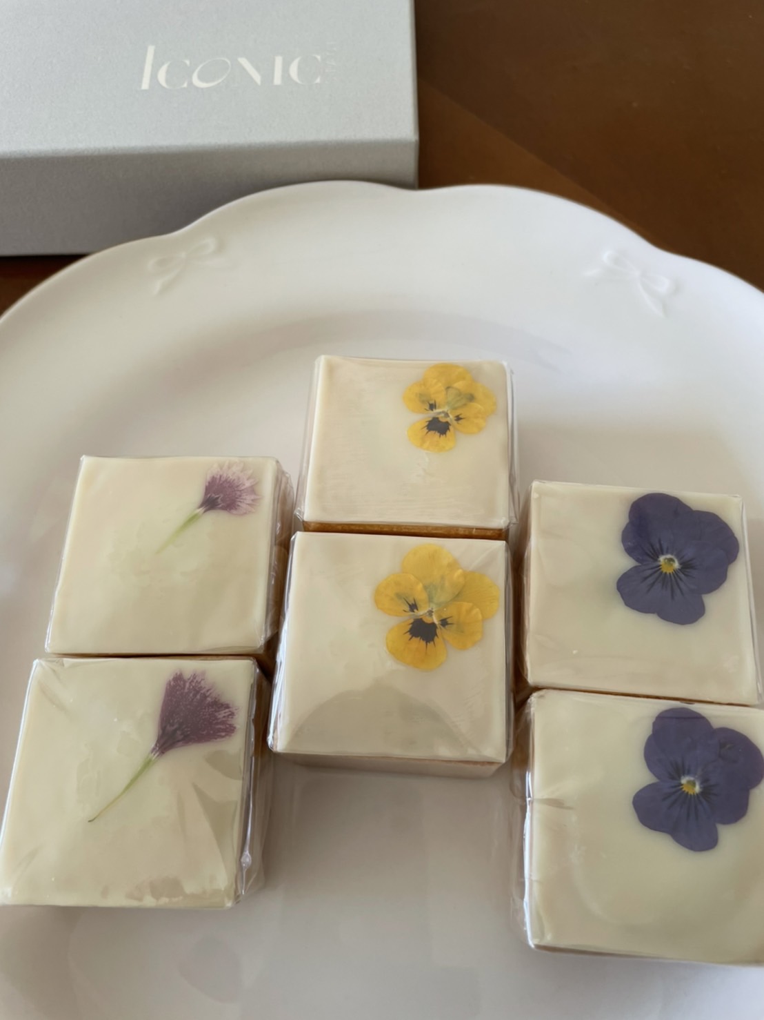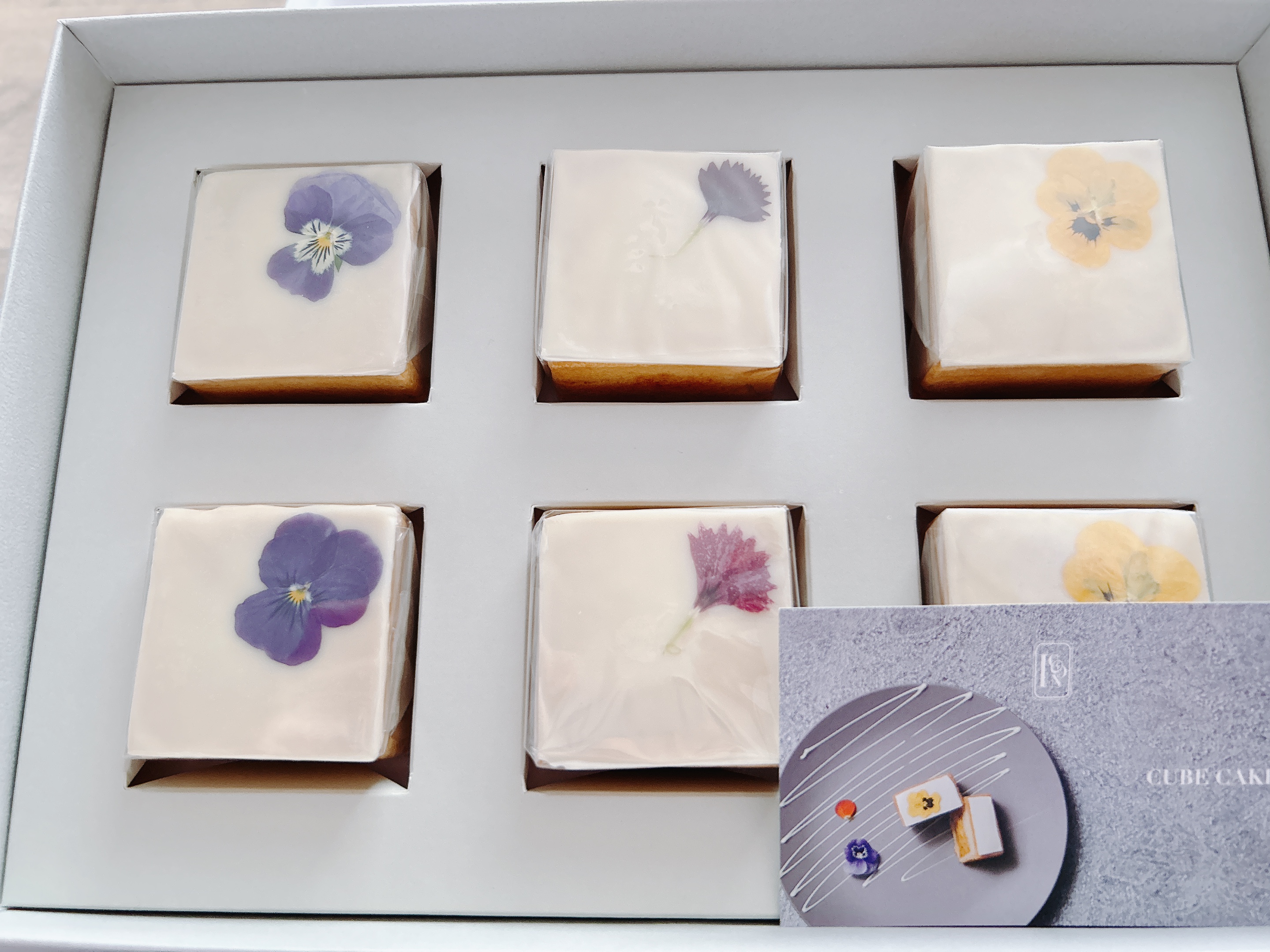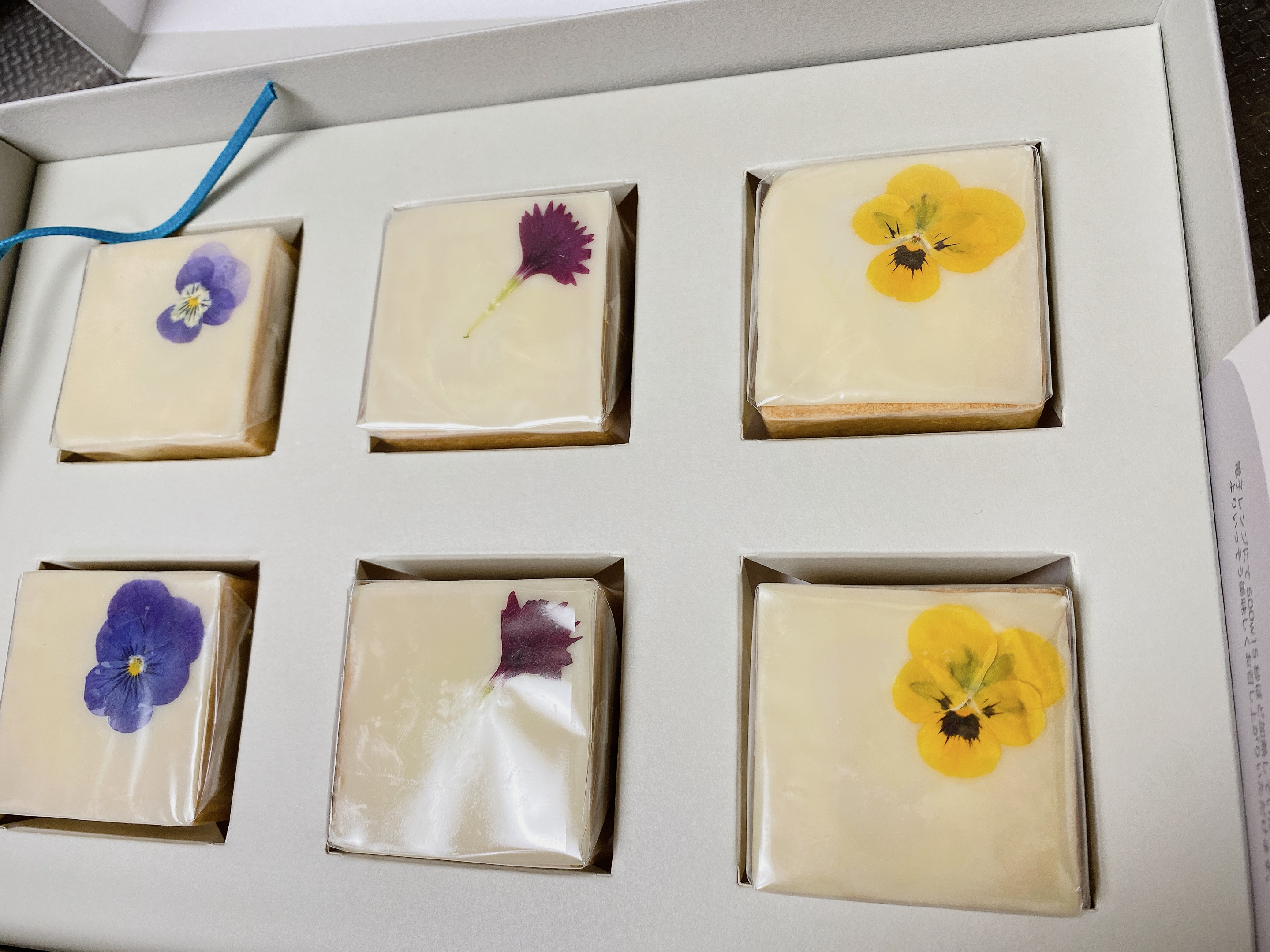 ケーキの1つ1つに飾られたエディブルフラワーのワンポイントの可愛らしさとシンプルでお洒落な見た目と共に、厳選素材を使って、添加物を使わずに、丁寧に作られているキューブケーキは、作り手のこだわりを強く感じる、大人のケーキとでも言う様なとても美味しい逸品でした。