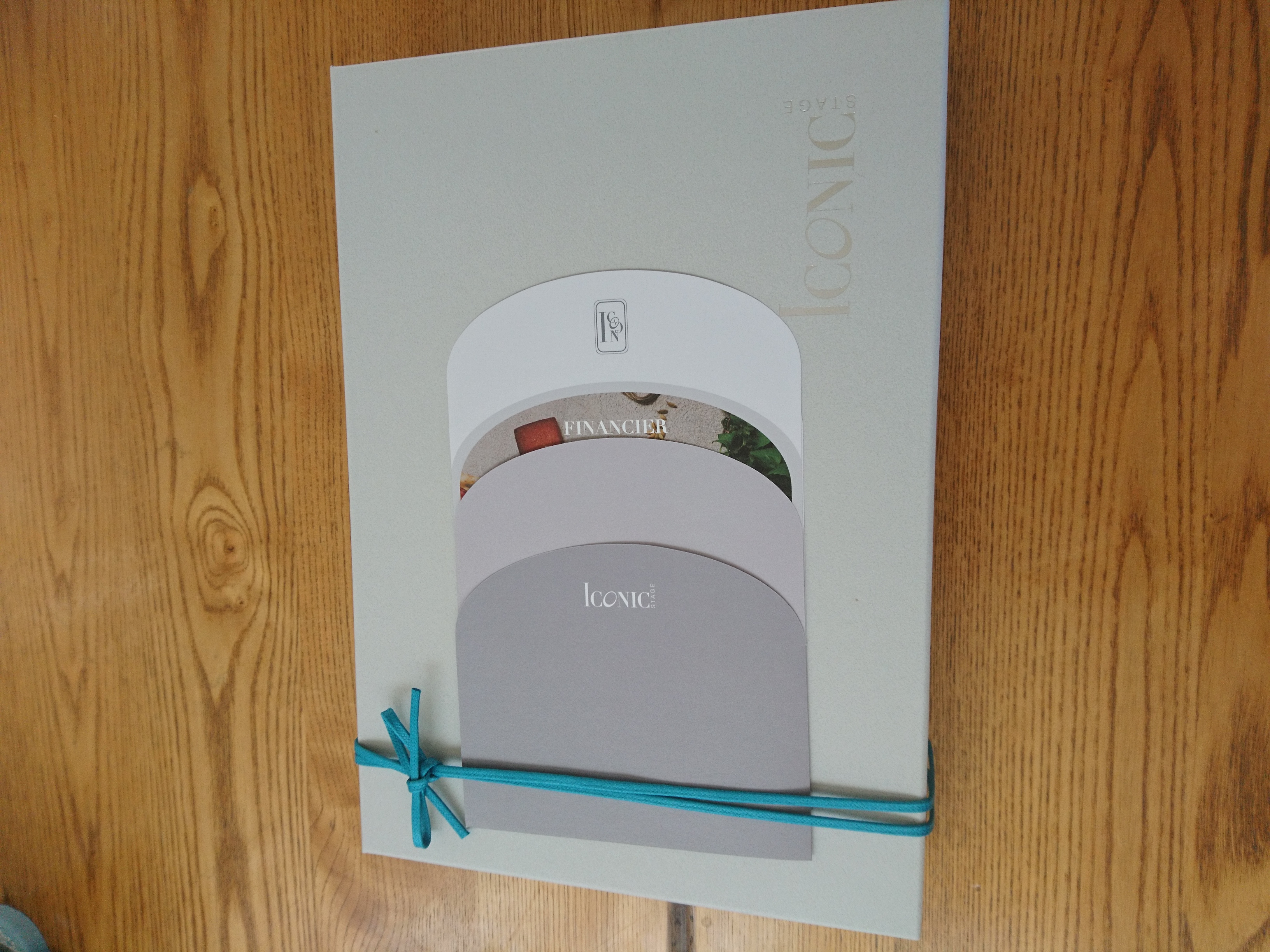箱を開けてみました。キューブケーキ(パイナップルカルダモン)×2個、(アップルシナモン)×2個、(キウイ&キウイ)×2個、キューブケーキの召し上がり方説明1枚、梱包のブルーの紐リボンに挟まって商品紹介冊子1冊、以上が入っていました。