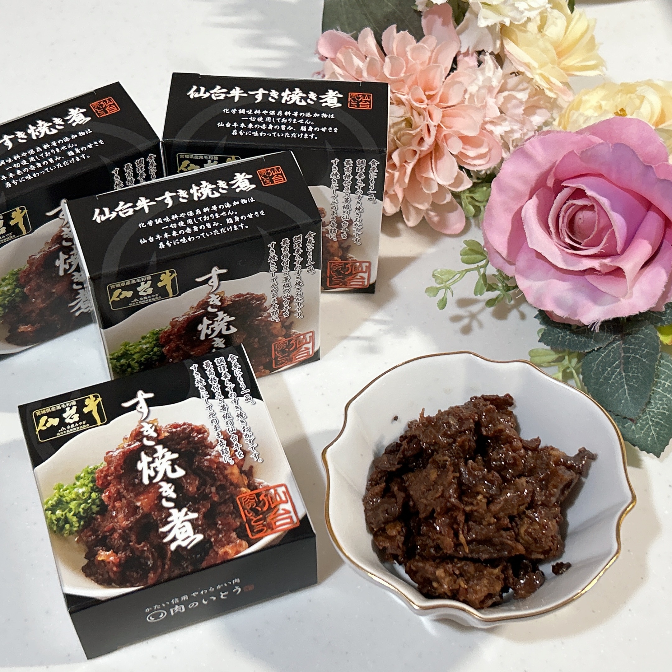ごはんのおかずや、おつまみ、お弁当やおにぎりの具材としても人気の仙台牛のすき焼き煮を手軽にお召し上がり頂けます。