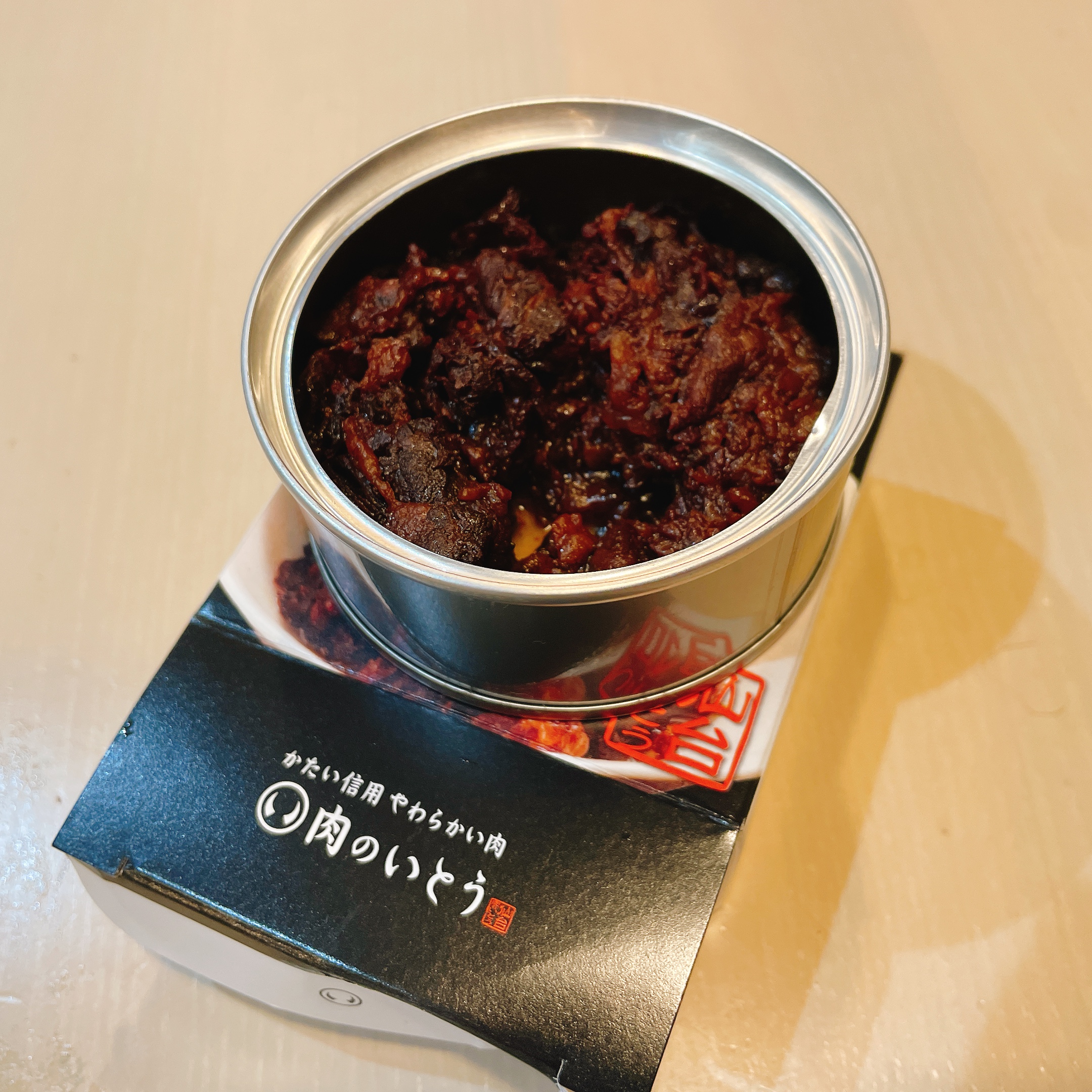 缶詰で入っているので、開ける前は油で白いのがギトギトしてるかなぁってイメージやったけど、蓋を開けるとびっくり肉がゴロゴロ‼️これはすげぇやっぱりただの缶詰肉ではないと思いました!