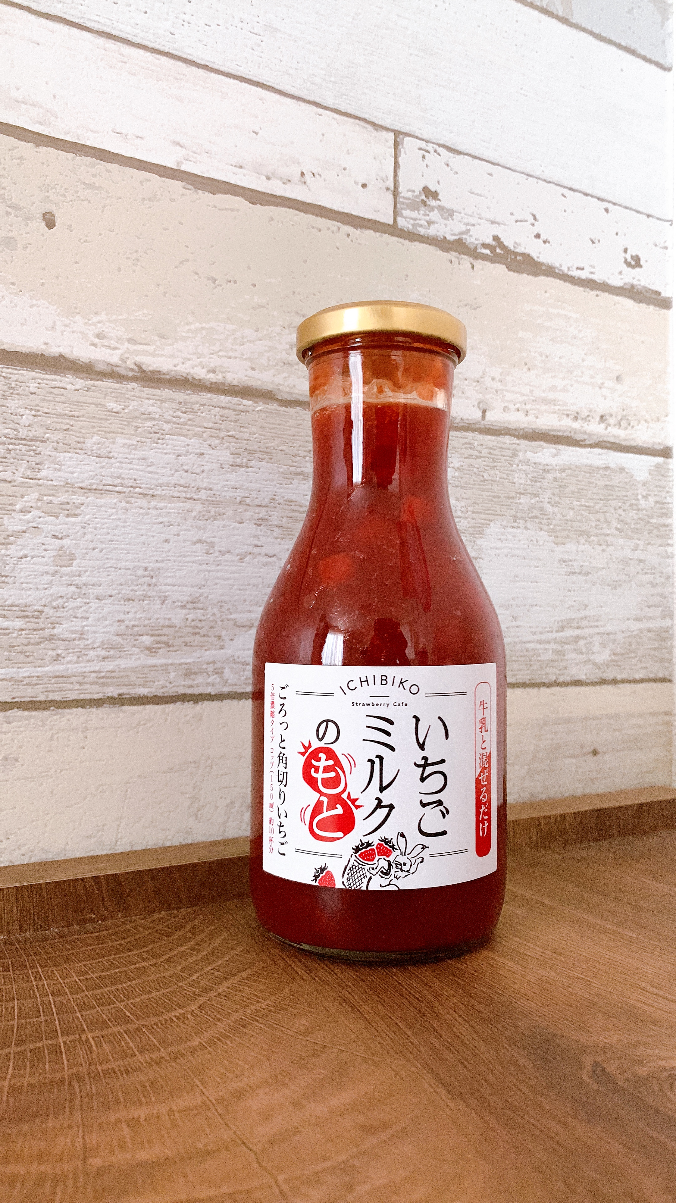 角切りいちごを砂糖に漬け込んだ「いちごミルクのもと」です。ごろっと角切りのいちごがたっぷりと入っているので、果肉感が味わえます。4~5倍を目安に牛乳と混ぜるだけで手軽に店舗で人気の「いちごミルク」が自宅で楽しめます。ミルクに合わせるだけでなく、ヨーグルトのトッピングやかき氷のシロップ代わりとして利用するのもおすすめ。1本でコップ(150ml)約10杯分入り。プチギフトにもおすすめです。