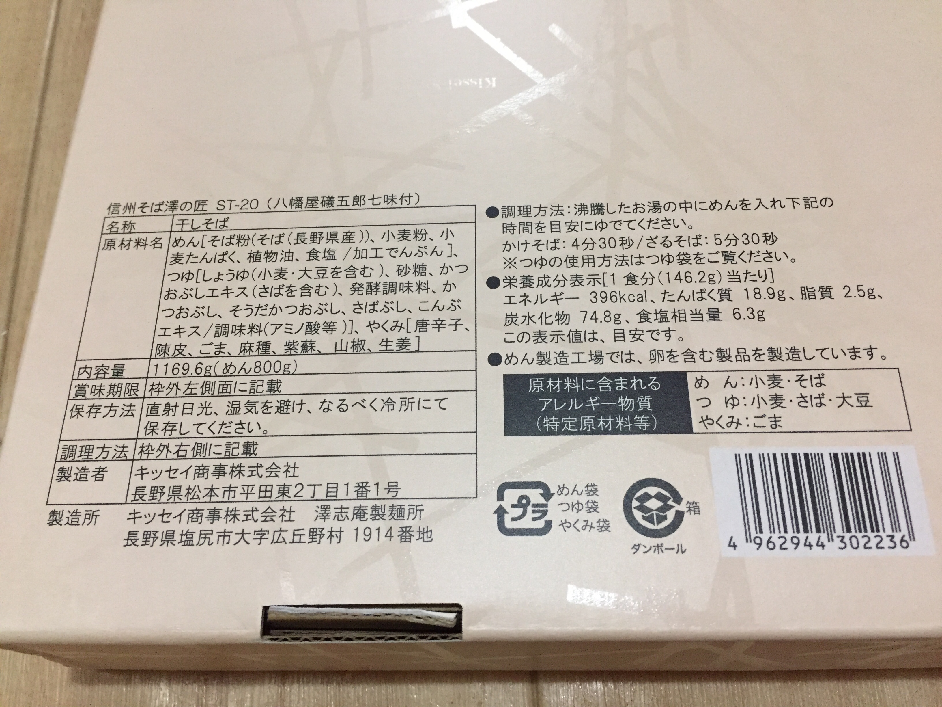 七味唐からし付き 信州そば 澤の匠 ST-20 4袋(8人前)