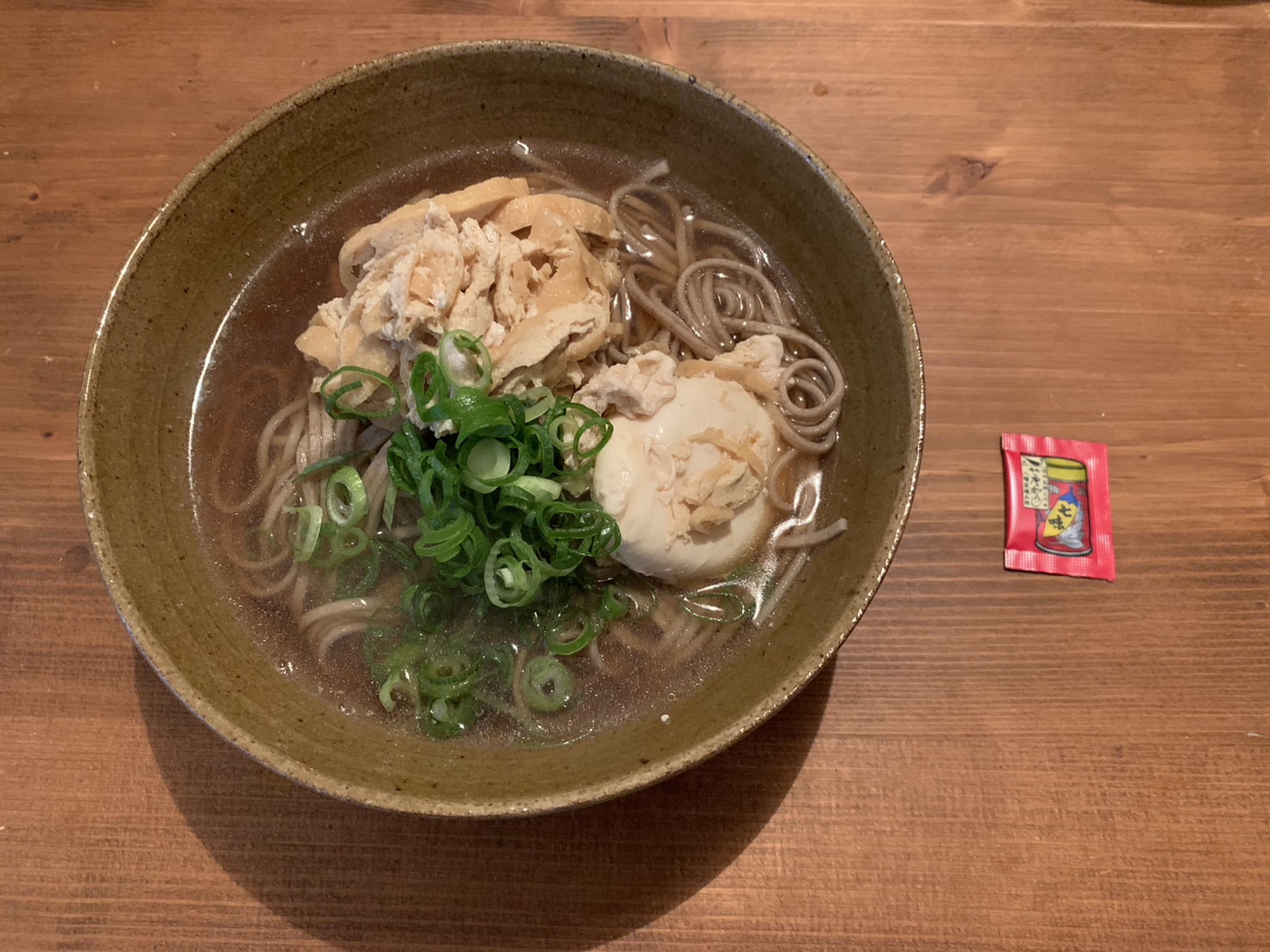 最初具無しで食べ途中薄揚げのきざみとねぎを足しましたが、つゆの旨みと合い最高に美味しいそはでした。