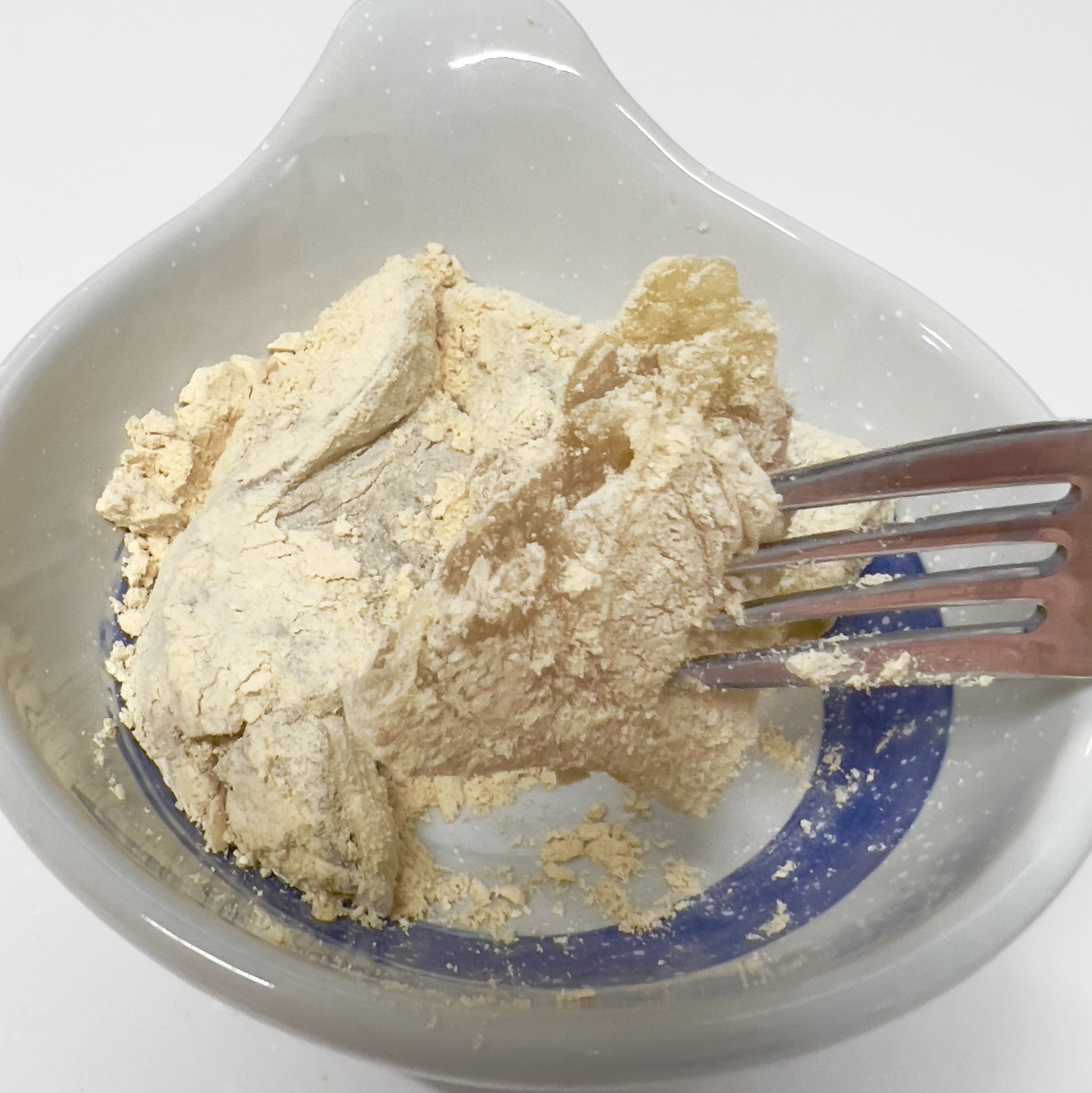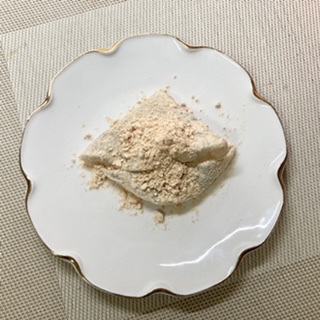 お皿に乗せる時は少し大きめにしないと黄粉がこぼれる程です。