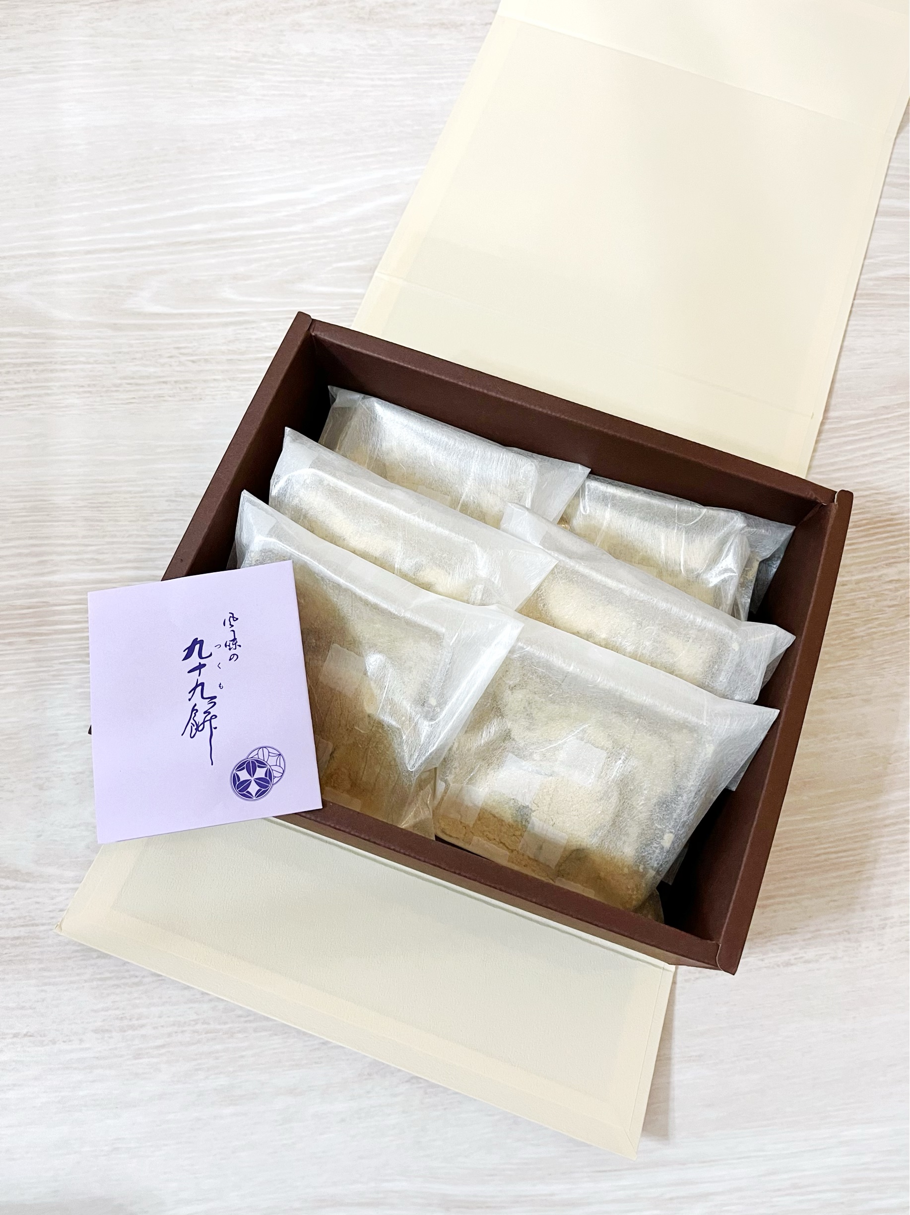 上品で美味しい九十九餅のセット、手土産にお勧めです。