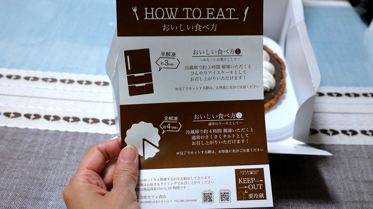 タルトは重量感があって、家族4人で食べましたが、8カットにして2回に分けても満足いくほど大きかったです。