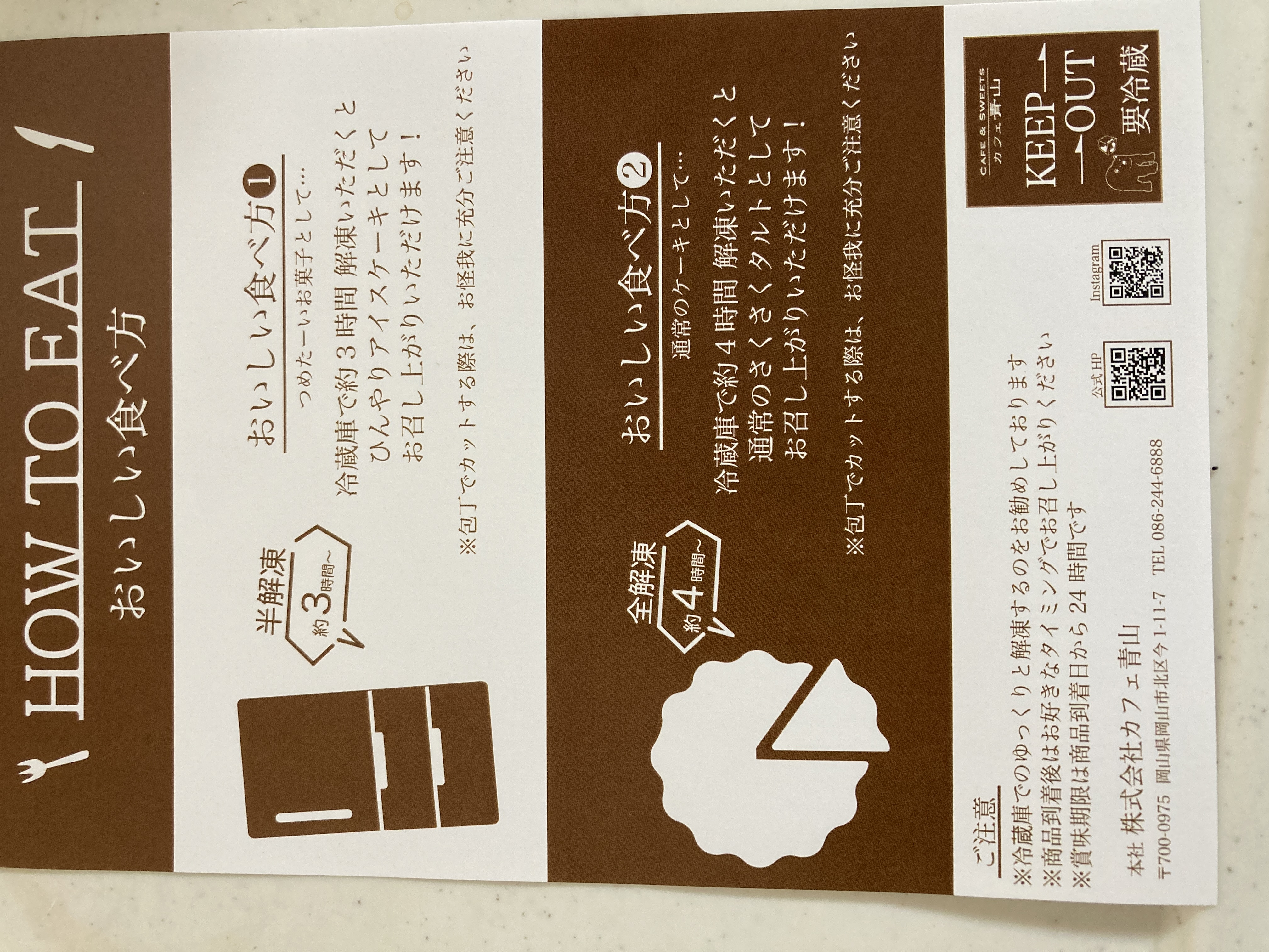 冷蔵庫で約3時間 解凍いただくとひんやりアイスケーキとしてお召し上がりいただけます!