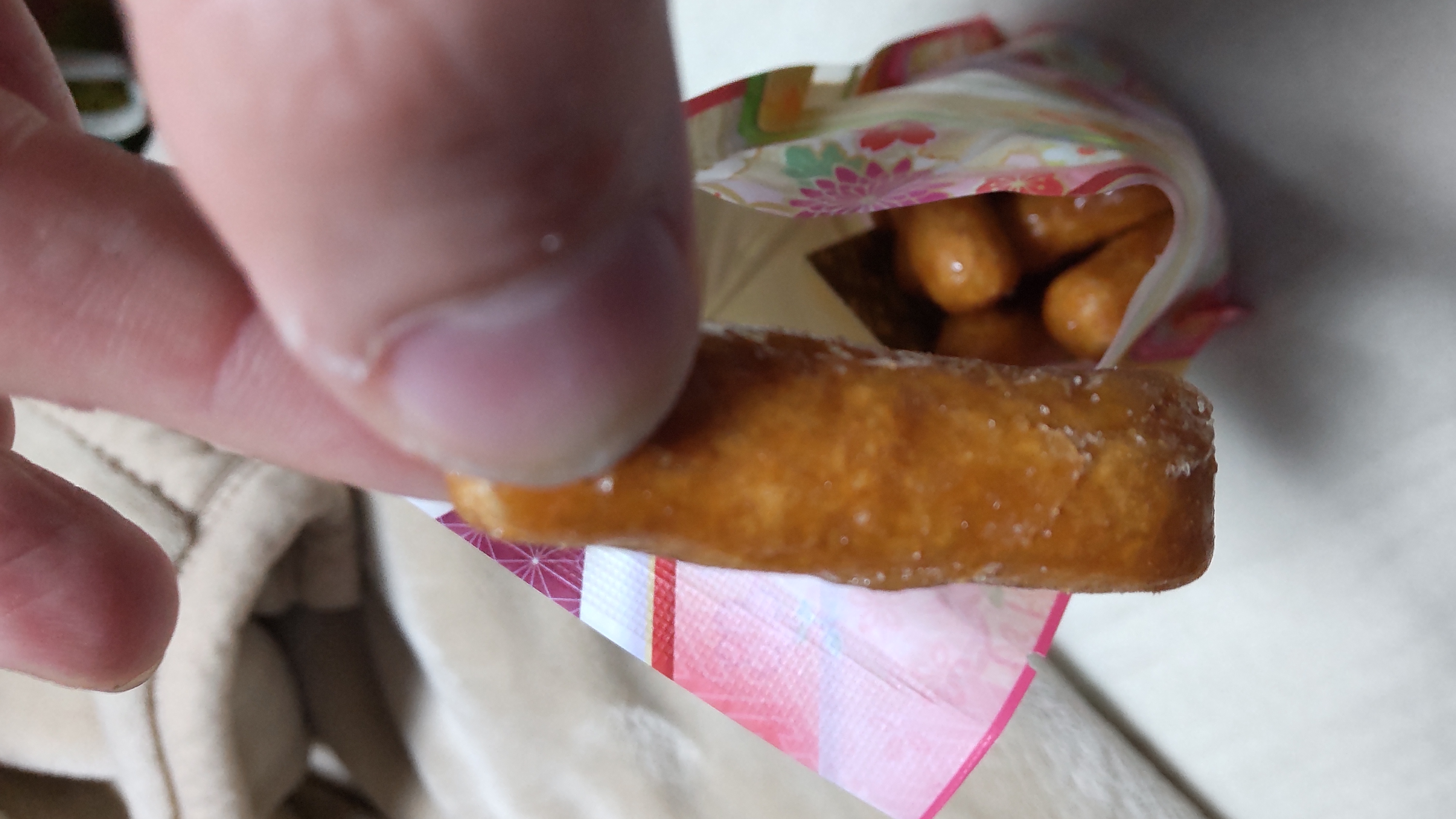 お茶と一緒に頂きましたが、一口食べてあまりの美味しさにこれは!と、思わず手が止まりました。親指くらいの太さのかりんとうはツヤツヤと美しく砂糖がコーティングされており、とても上品な甘さが口いっぱいに広がります。しっかりと甘みはありますが後味はすっきりとしており、何個でも食べたくなるお味です。表面は硬めでザクッとしており食感もいいです。義母も一緒に頂きましたが、お茶請けの中ではこれが一番好きだと言っていました。かりんとうは甘ったるいイメージがありますが、この商品は今まで食べたことのあるものとは全く異なりました。寒いこの季節、お茶と一緒にこのかりんとうを食べるとお茶がより一層の美味しく頂だけると思います。かりんとう好きだけでなく、苦手だという人にも是非1度試して見て欲しい品だと思いました。