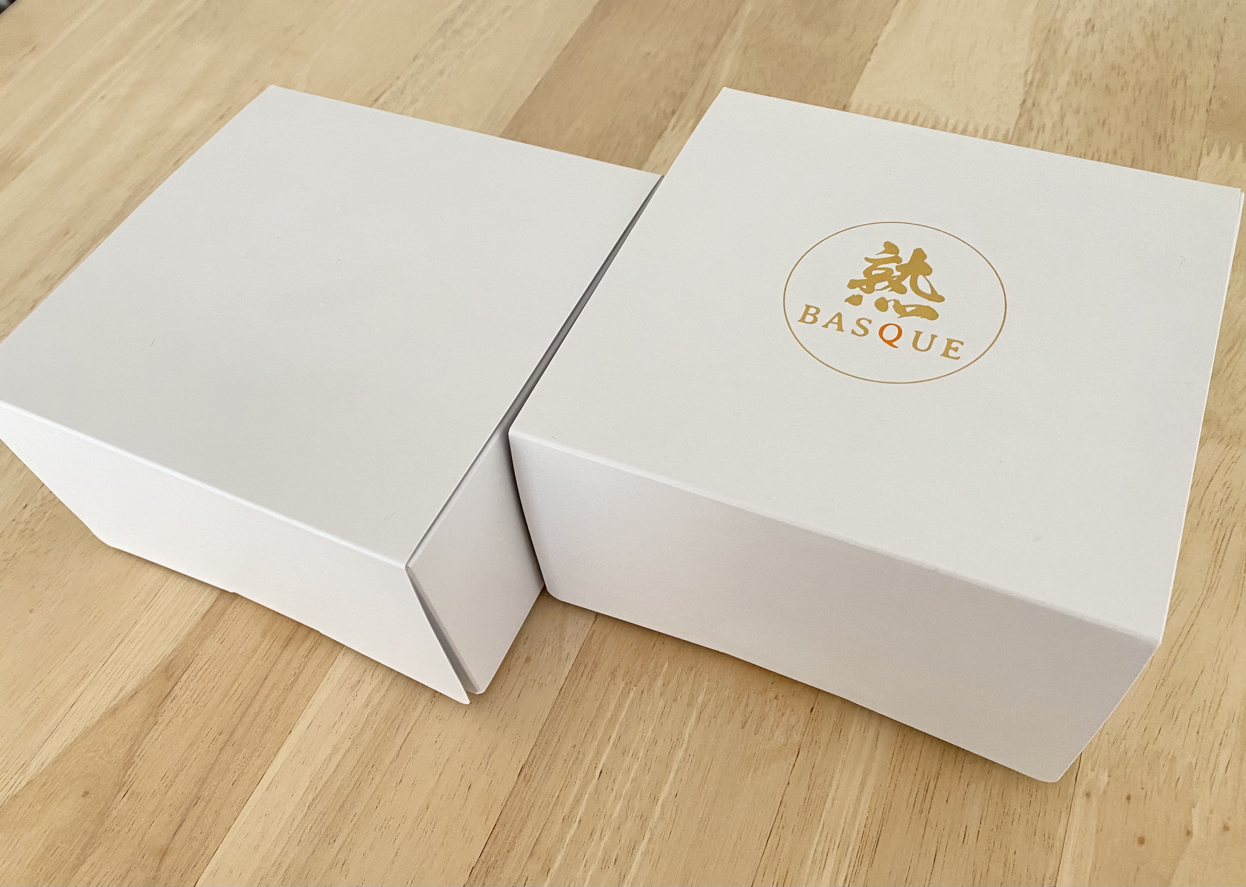 「熟成バスクチーズケーキ」と「非熟成バスクチーズケーキ」の2種セットです。熟成と非熟成の違いは熟成したか、しないかだけ。ベースのグルテンフリーのバスクチーズケーキは、北海道産のクリームチーズと生クリームを贅沢に使用し、深いコクや洗練した味を実現。絶妙なふわトロ食感と豊かな風味、口に入れた瞬間に広がる旨味を感じられます。別々のタイミングで2度熟成をかける「二段熟成製法」によってじっくりと旨味を凝縮し、新しい食感と奥行きのある味を引き出しています。同じ材料・製法でありながら異なる2種の味わいを楽しめるバスクチーズケーキです。