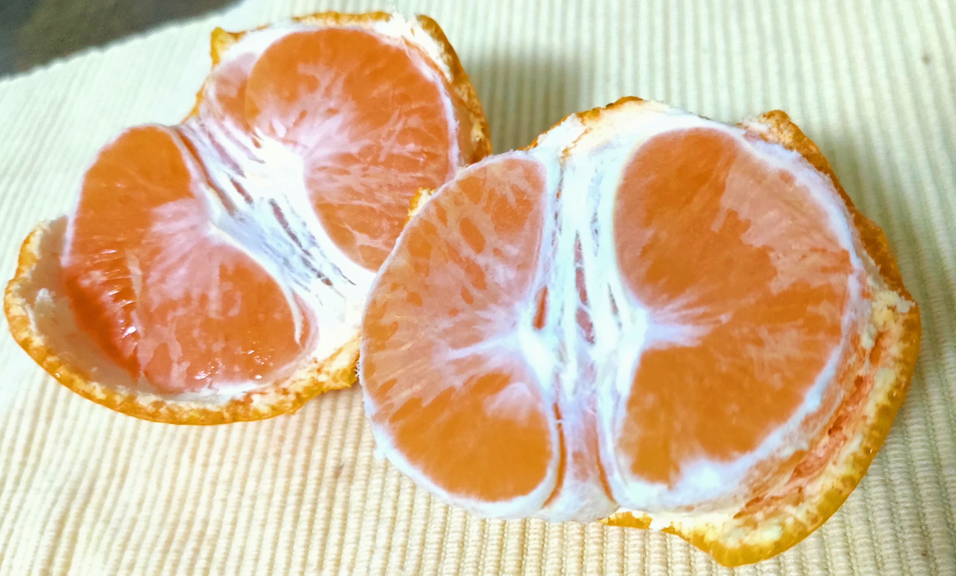 伊藤農園さんのみかんは、ノーワックス、ノーブラッシング、防腐剤不使用との事なので外皮ごと丸かじりして食べてみました。外皮はサクッと歯切れ良く、苦味もほとんどなく美味しく食べられました。皮も柚子の皮みたいに切ってサラダにトッピングして食べても美味しかったです。