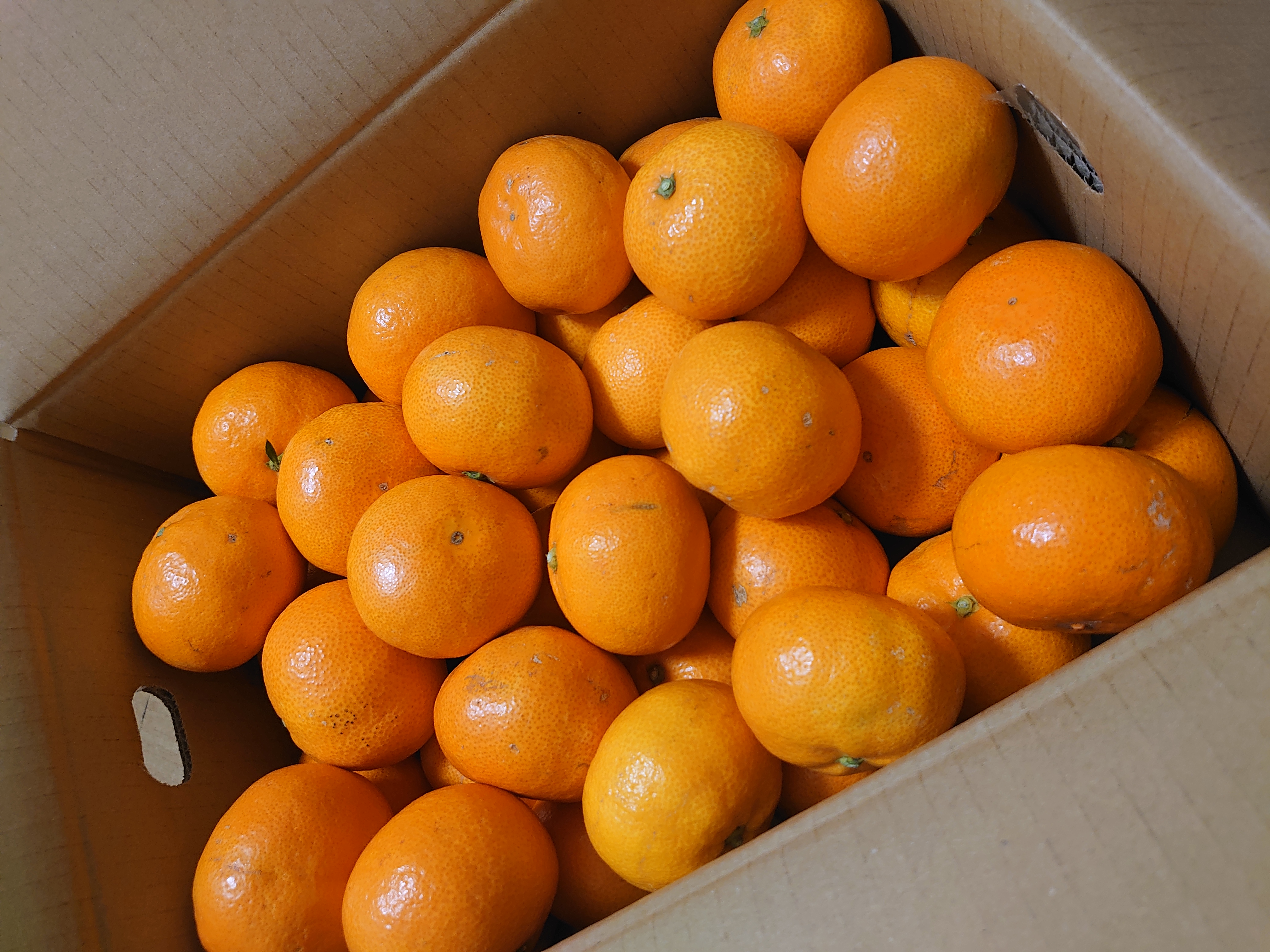開けるとつやつやピカピカの綺麗なみかんがぎっしり入っていています。