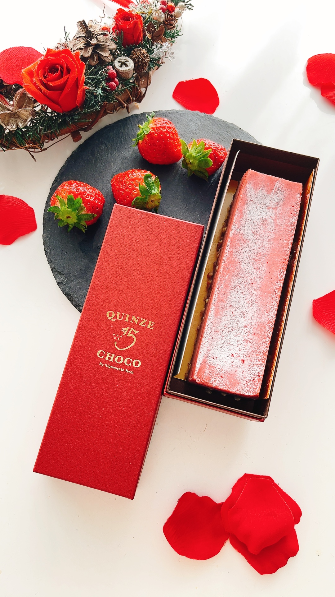 「Quinze Choco」では、いちごの里で採れた新鮮ないちごをたっぷりと使用しています。
