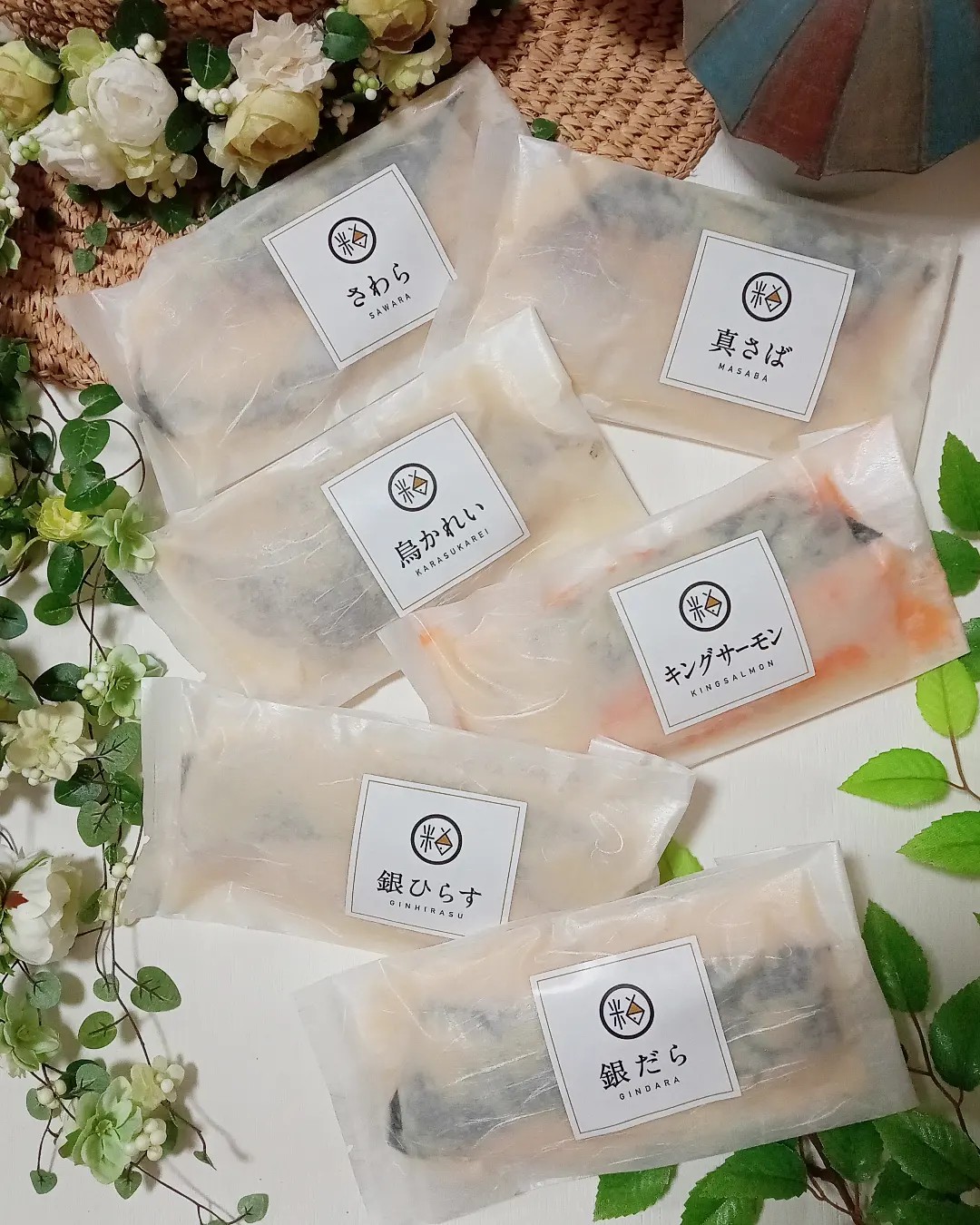 箱を開けると6種類の魚がそれぞれ個包装で入っています。銀だら、サーモン、銀ひらす、鳥かれい、さわら、さばです。気分によって魚を選べるのは嬉しいです。