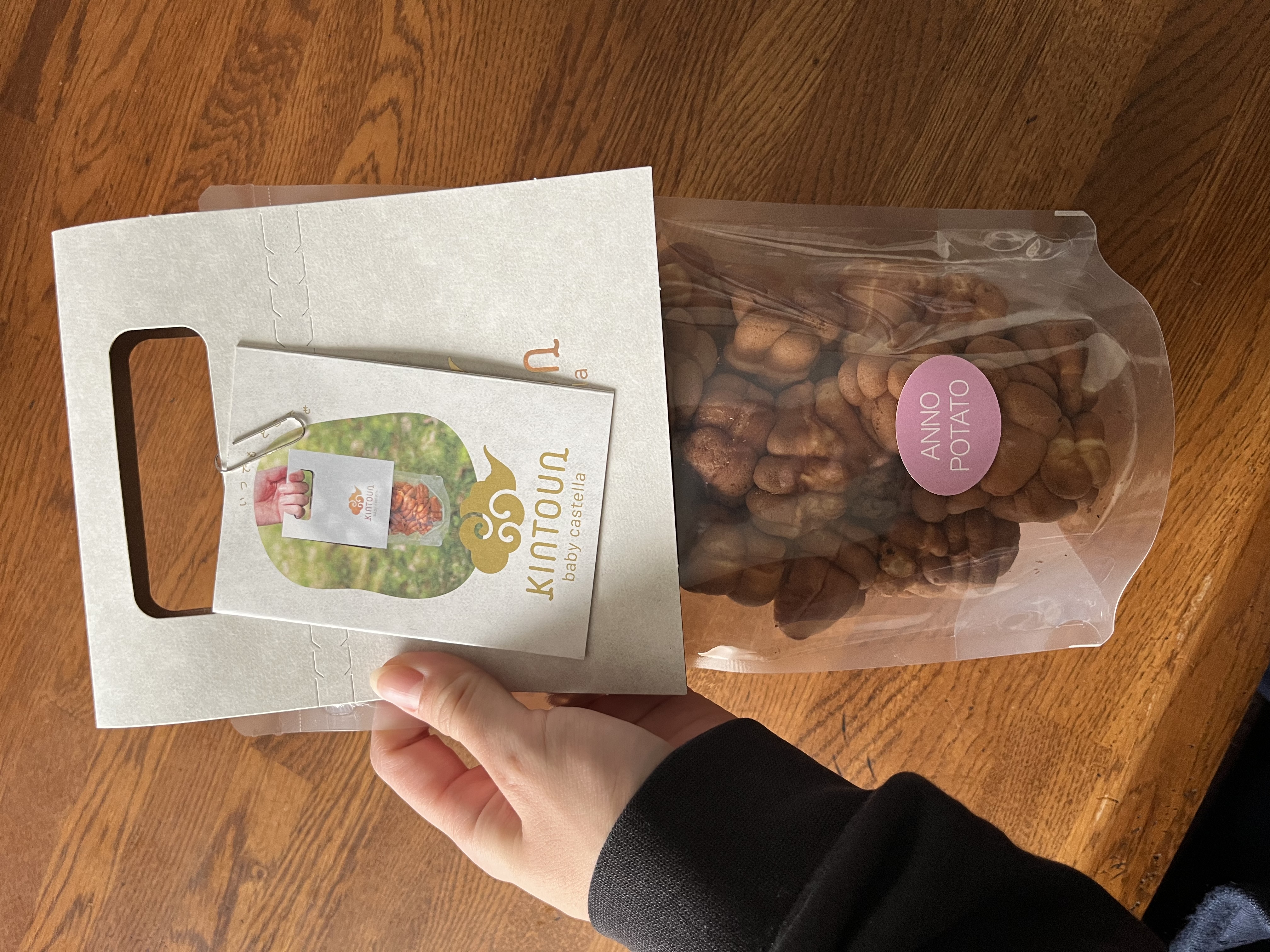 食感はモチモチとしていて新食感のベビーカステラでした。優しい甘さは感じられましたが芋っぽさはいまいちだったので安納芋?って感じだったのが残念でしたが、しっかり素材にこだわってるのはとても伝わりました。