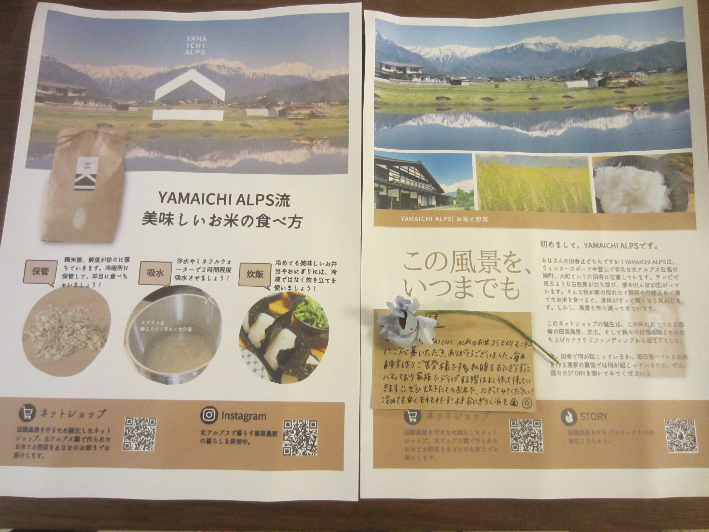 また、はぜかけ米やオーガニック有機米も、YAMAICHI ALPSネットショップにて取扱中です。
