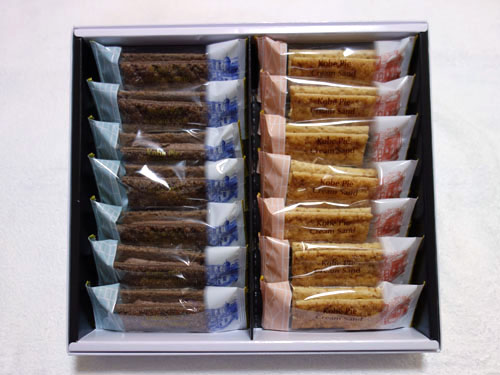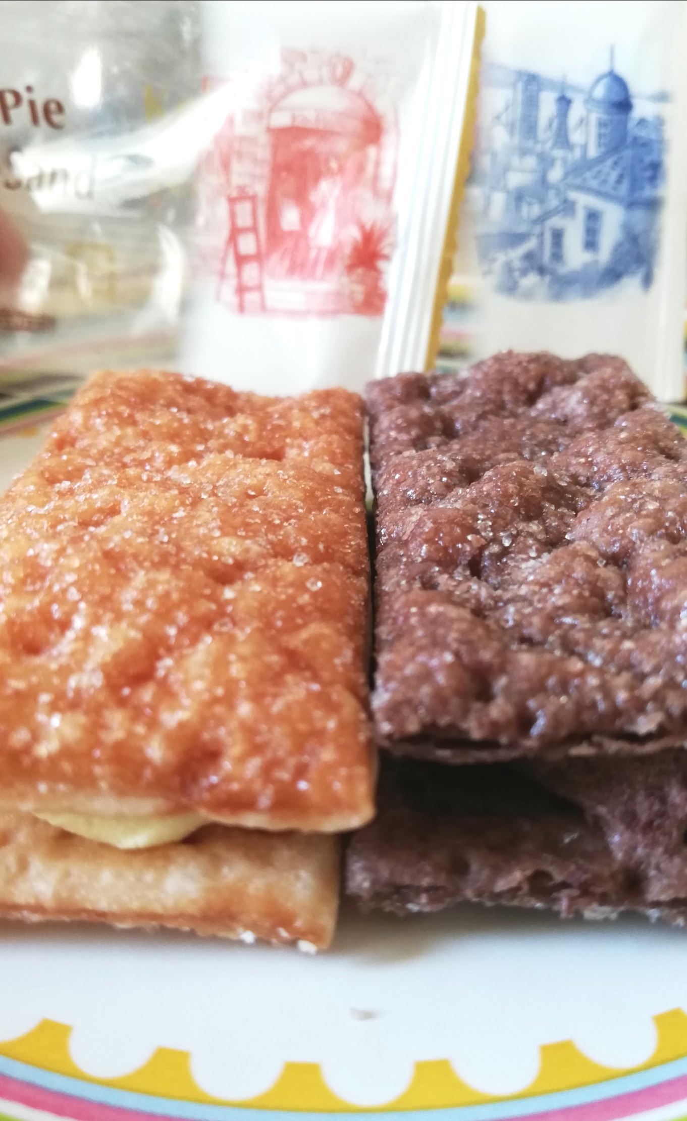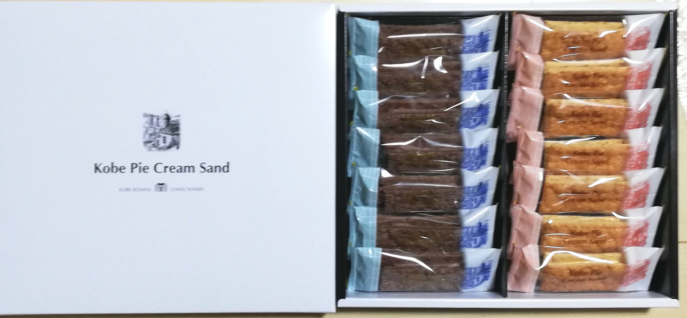 神戸の老舗焼き菓子屋さんが作った「クリームサンドパイ」です。サクサクのパイに滑らかなクリームを挟んでいます。カスタードクリームサンドパイとチョコレートクリームサンドパイの2種セット。サクサクのパイに柔らかで甘いクリームを挟むことで、より一層パイのおいしさを引き立てます。国内の自社工場で丁寧に焼き上げられ、印象的な黄色の包装紙で包んで届くので、贈り物にもおすすめです。